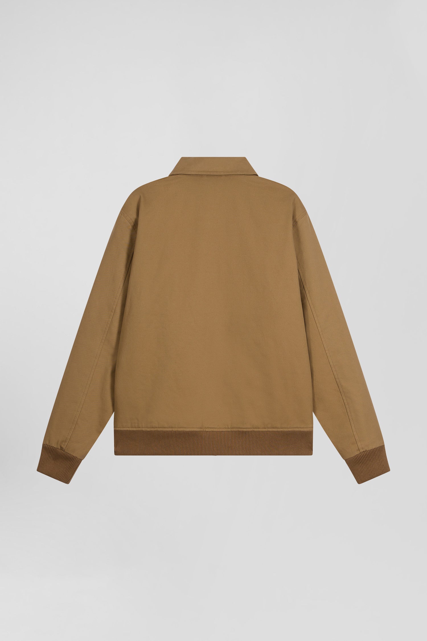 Zip jacket with shirt collar in hazelnut cotton gabardine