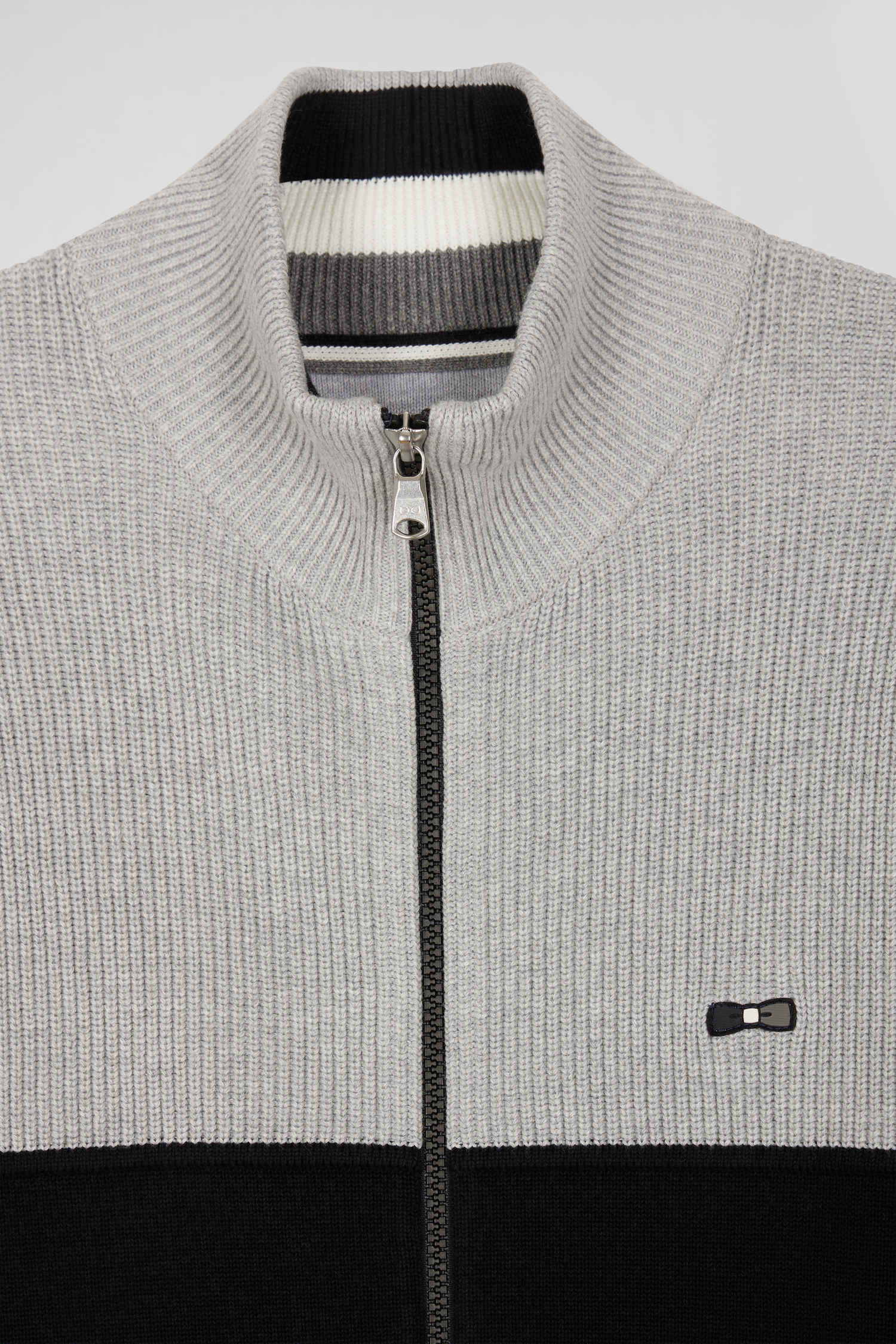 This zip-up cardigan with stand-up collar is a testament to the care we put into every detail of our collections. Its contrasting stitch effects, alternating pearl ribbing and jersey stitch, give this cotton cardigan an inimitable sport-chic look, whatever color you choose.