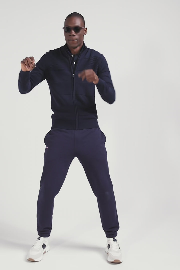 Embrace the Eden Park spirit with our unique zipped cardigan, where the play of knits creates a tone-on-tone striped effect, inspired by hooped rugby jerseys. Carefully crafted in cotton, this men's cardigan offers both comfort and style.