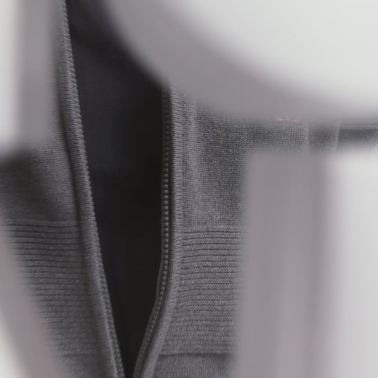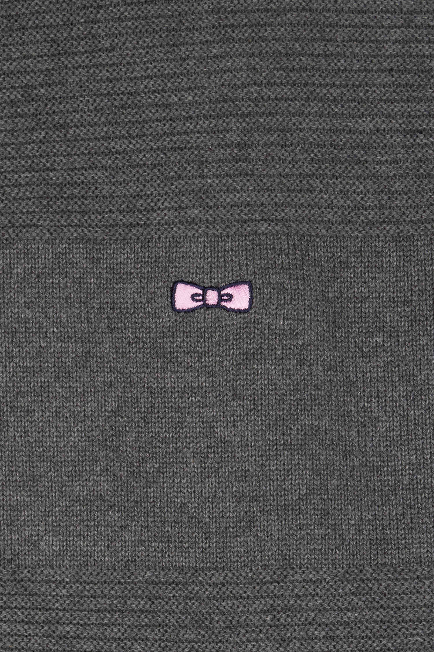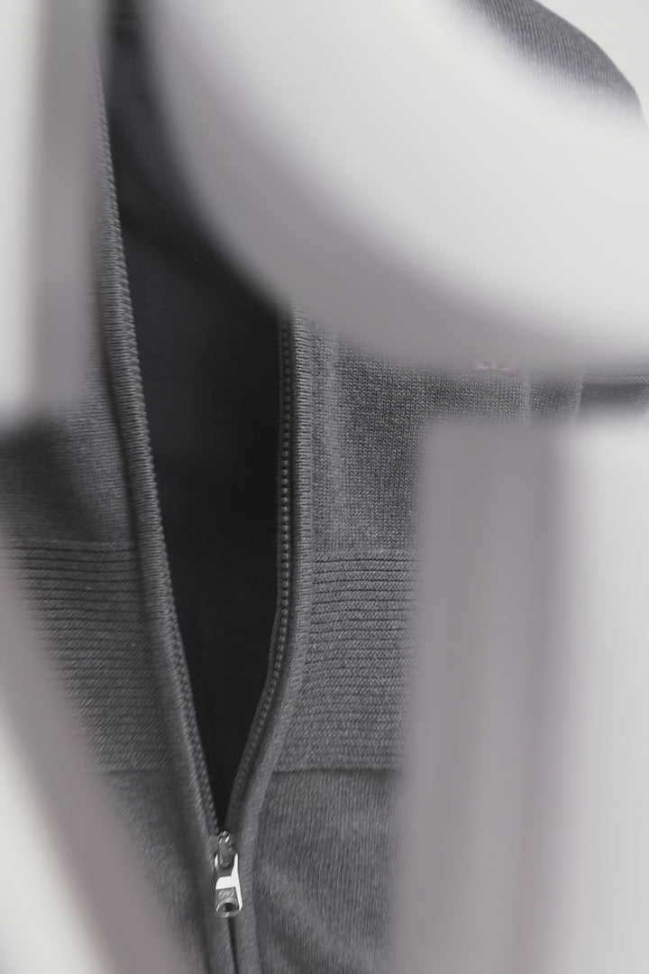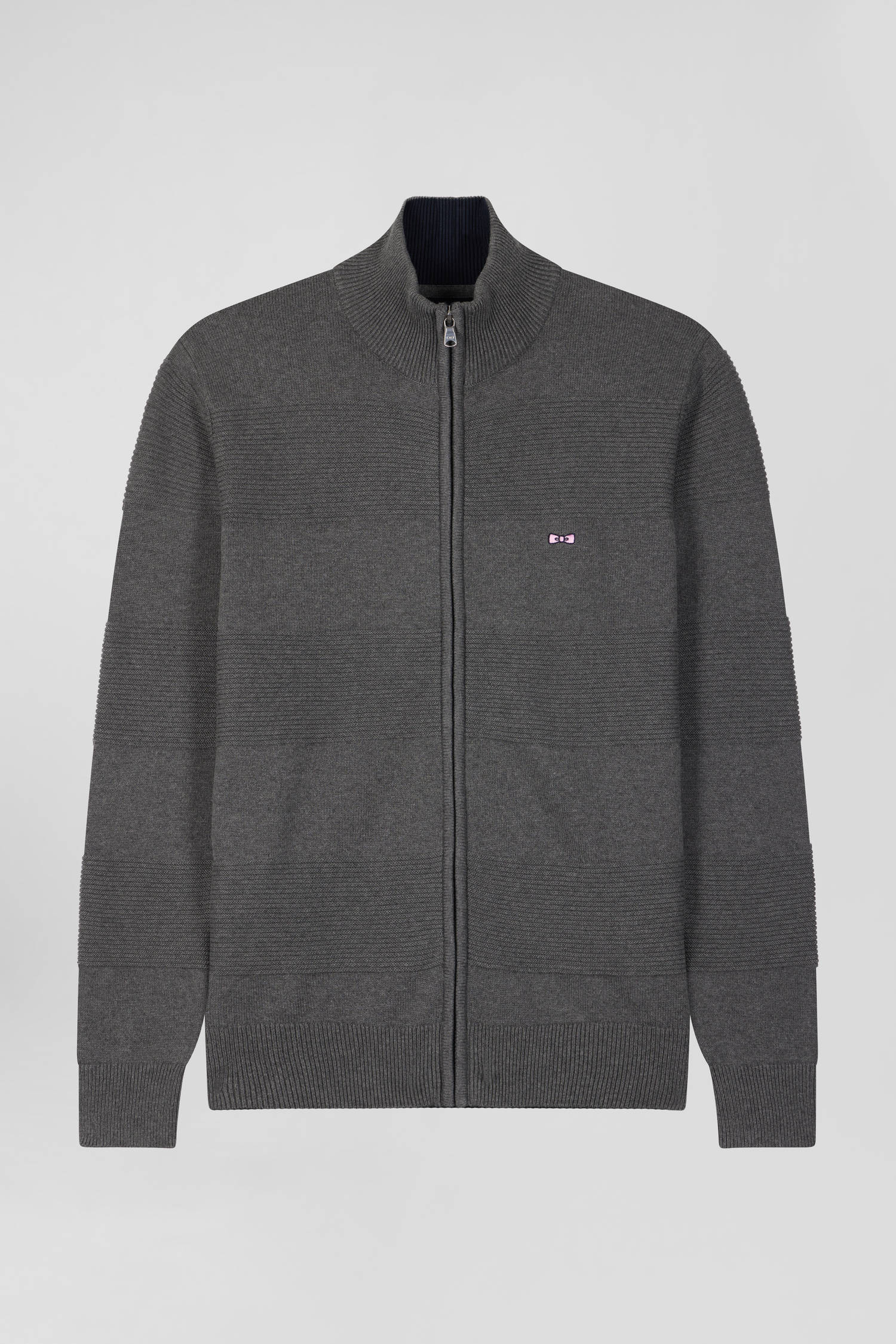 Regular grey plain cotton zipped cardigan with knit patterns