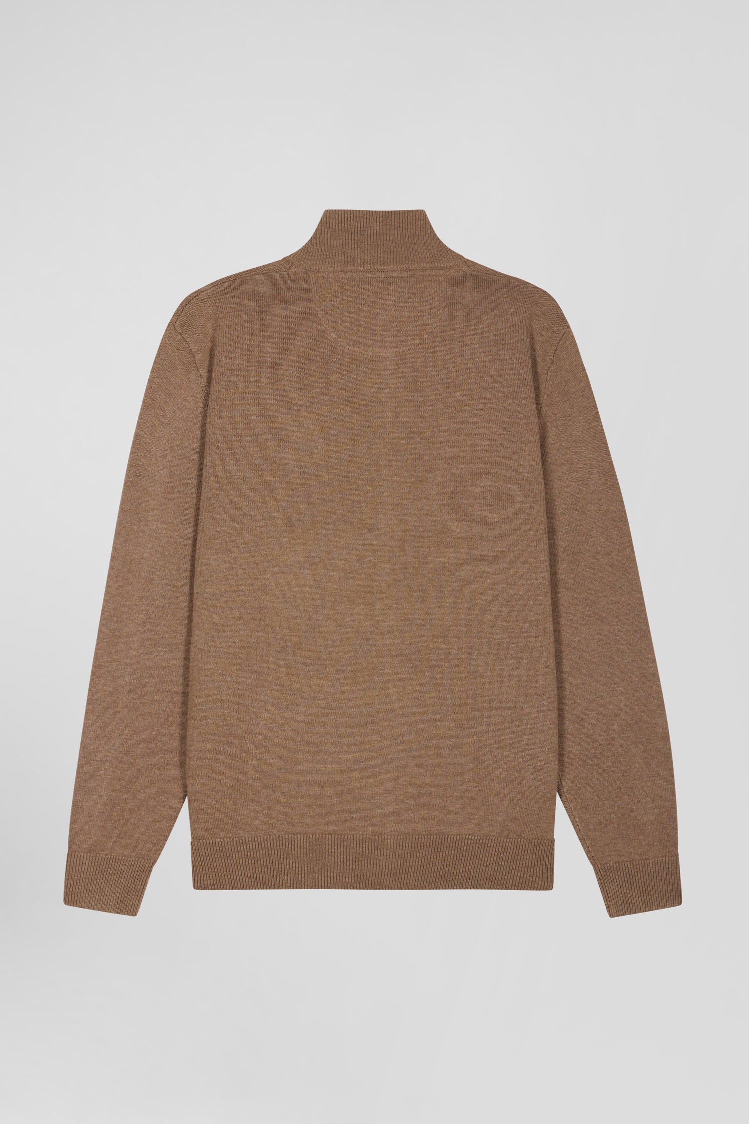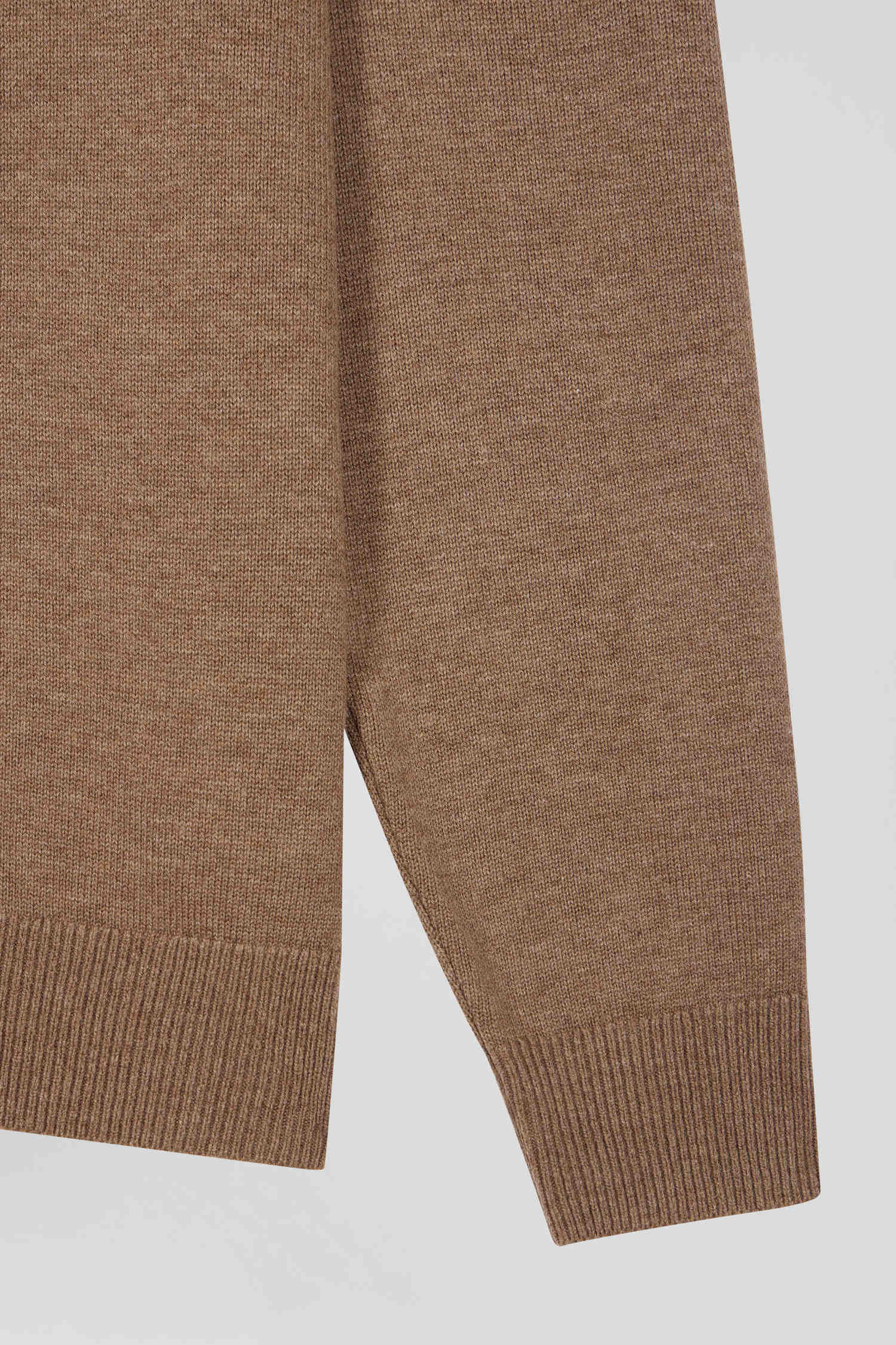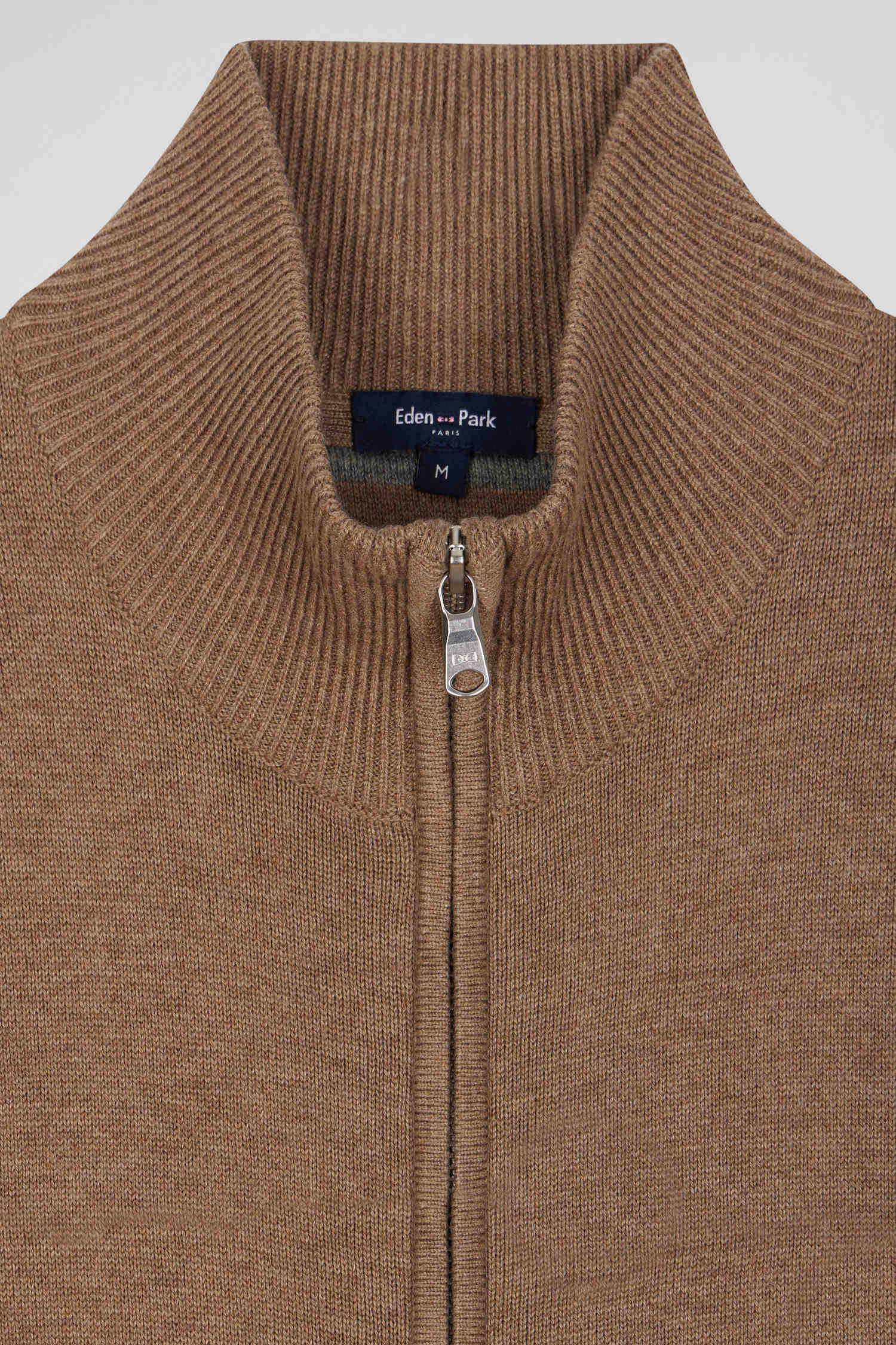 Regular camel plain wool and cotton zipped cardigan