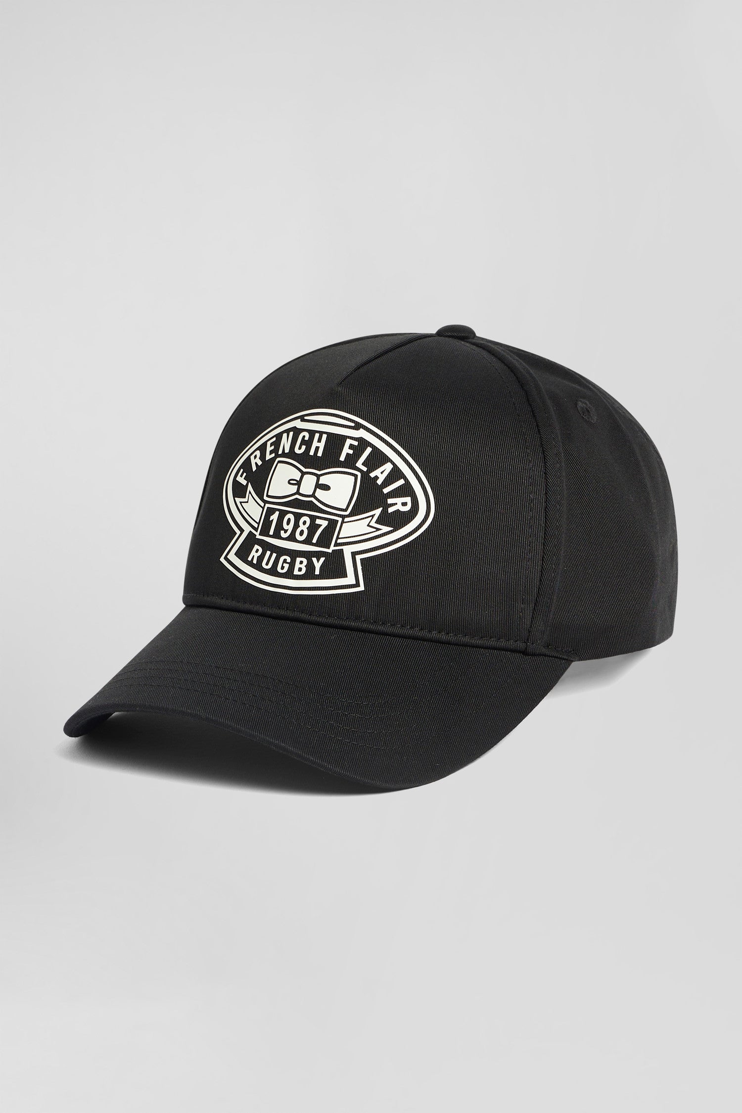 Our black cotton canvas cap, adorned with ecru embroidery on the front, pays homage to the house's sport chic roots. Designed to combine style and comfort, this men's cap is the perfect complement to any casual outfit, adding a subtle athletic touch to an ensemble.