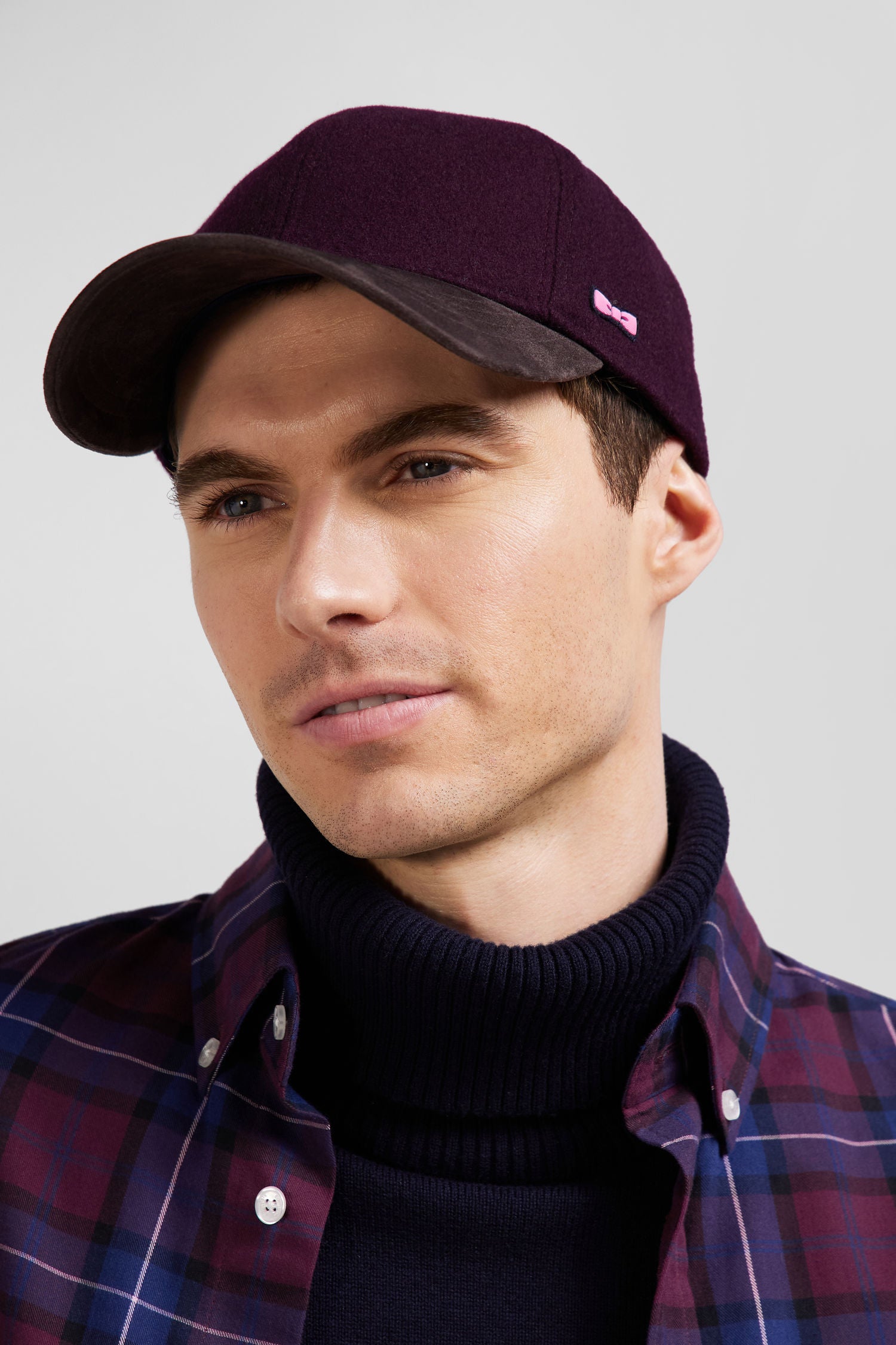 This two-tone cap features a contrasting peak for distinctive style. Made in part from soft wool felt, it offers comfort and elegance, while providing effective protection from both sun and cold weather. It's an ideal accessory with meticulous detailing to add a touch of originality to your everyday outfits.