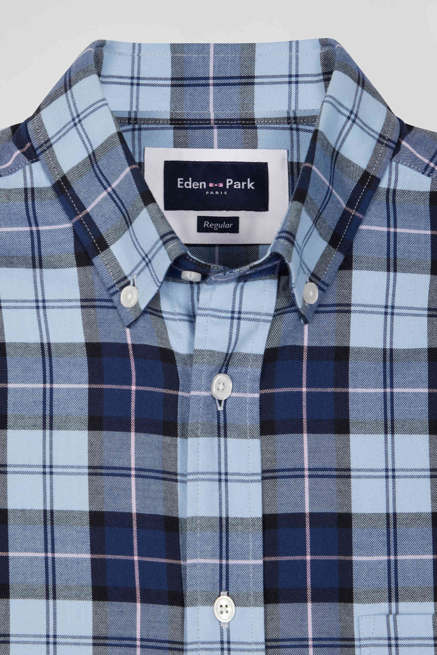 Opt for a fall-winter wardrobe staple with our cotton twill check shirt, synonymous with comfort and smartly casual style. Its straight cut and back pleat guarantee perfect ease, while its button-down collar adds a touch of understated elegance. The refined detail of the iconic Eden Park pink bow tie embroidered on the breast pocket is a subtle sign of this piece. Ideal as an overshirt for a chic yet casual look, this men's shirt is a sure bet for this season's outfits.