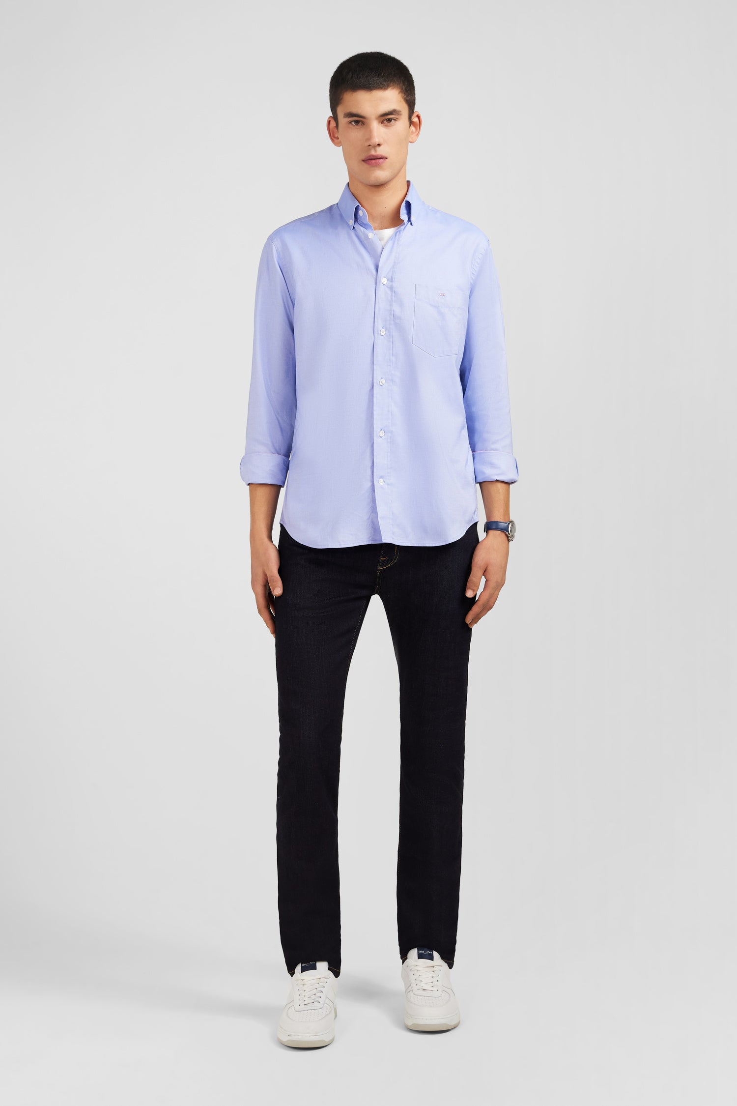 This shirt is woven in cotton. The fitted cut and plain colour scheme make it an iconic piece