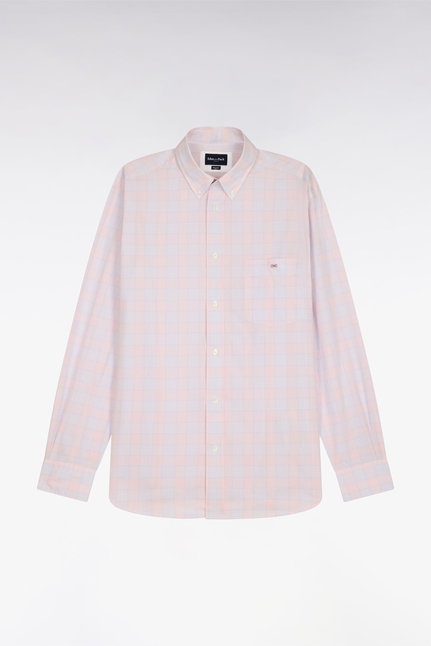 With its check pattern in pastel tones allowing for subtle color effects, cotton is combined here with a straight cut. Playing on reliefs and light color variations, this men's shirt elegantly mixes pink and sky blue Eden Park in perfect balance. Its refined texture and chromatic harmony bring a touch of fantasy and softness to the men's wardrobe, ideal for summer outfits or casual moments.
