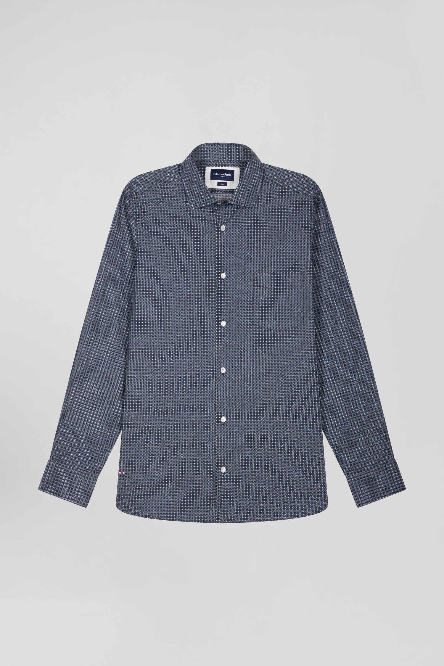 Timeless and elegant, this men's shirt in soft cotton features a micro check pattern that's both graphic and easy to combine with your wardrobe. Its slim fit offers a flattering, slightly slim fit.