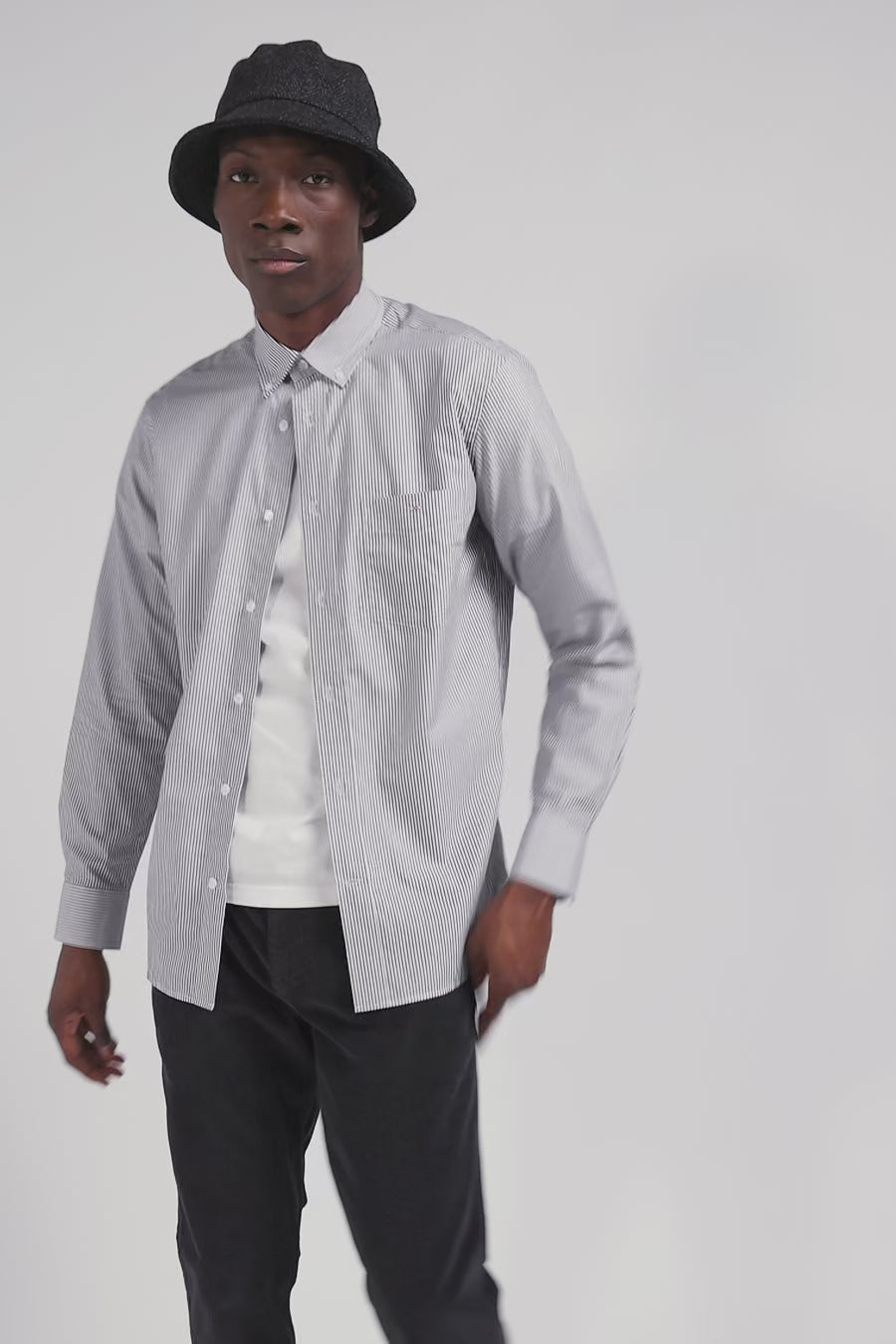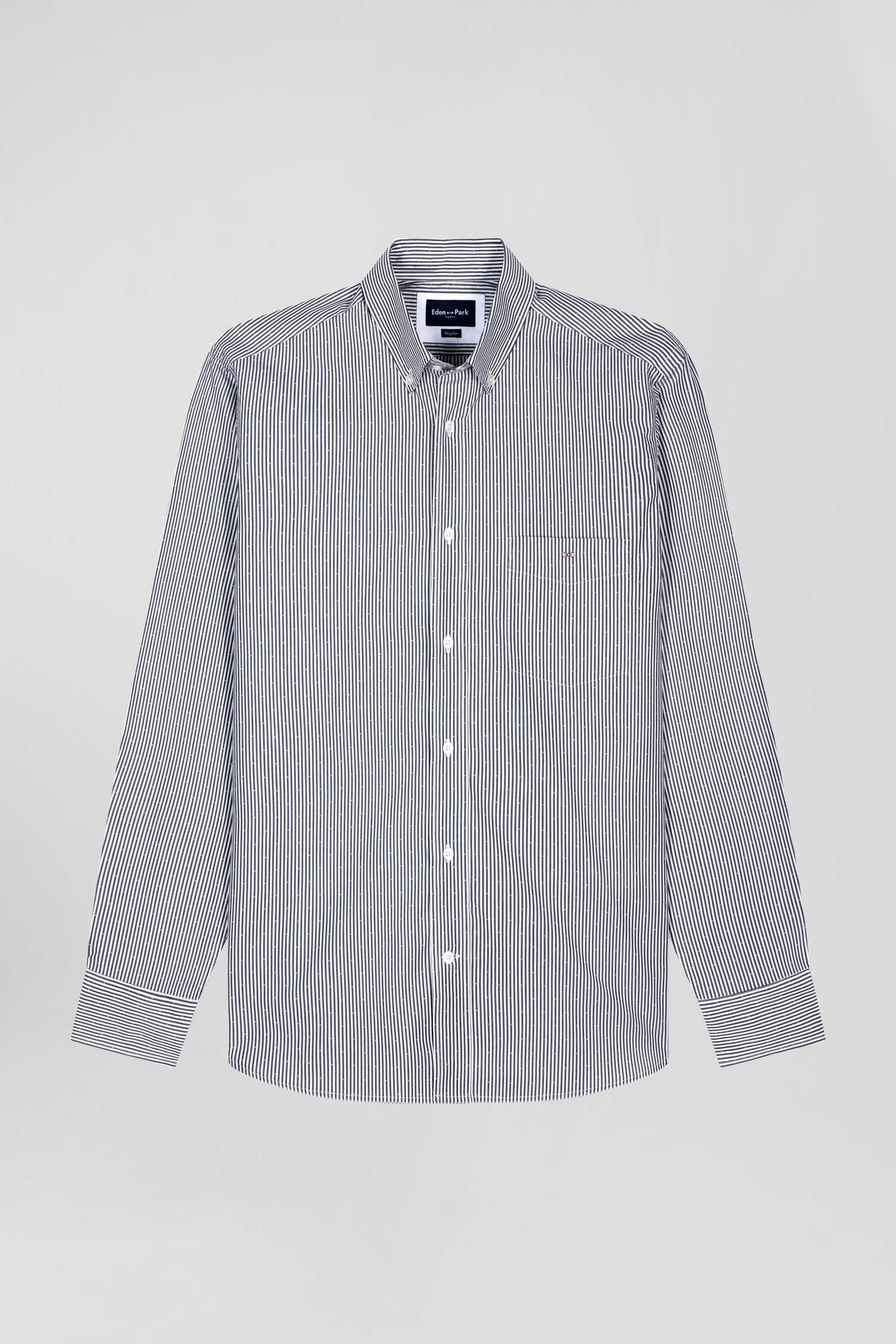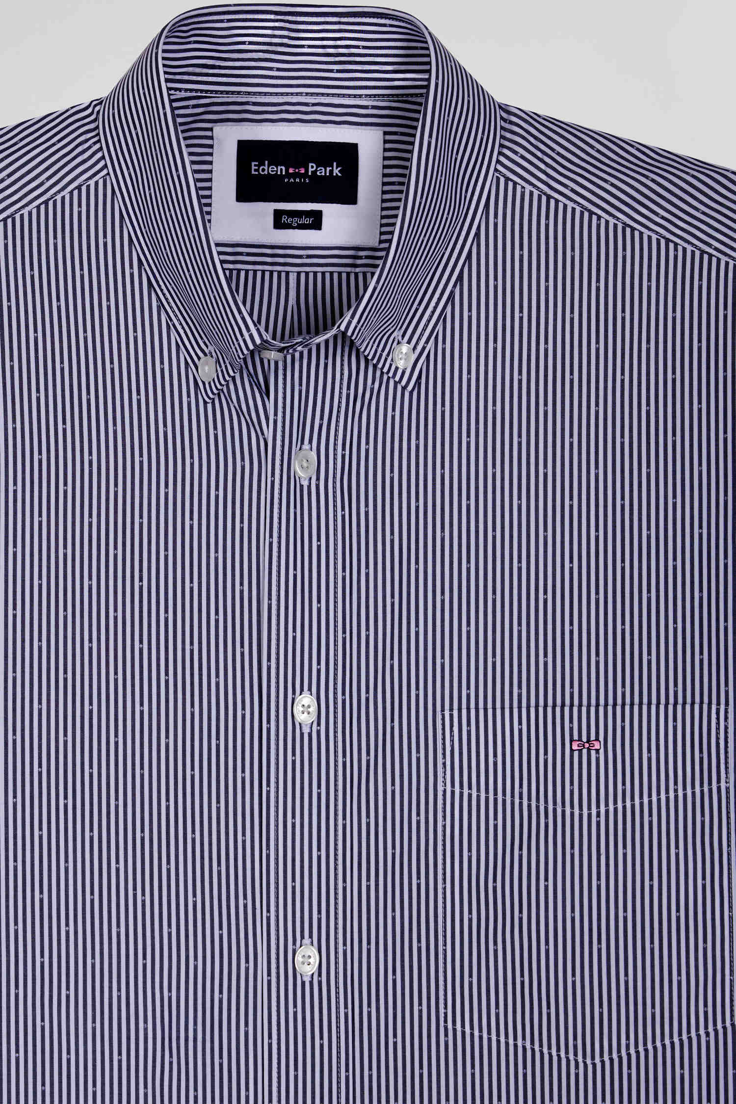 Our men's striped cotton jacquard shirt combines quality cotton with our inimitable craftsmanship. Available in navy blue, sky blue or pink, this striped shirt offers a regular fit for optimum comfort. With its practical pocket and button-down collar, it combines practicality with everyday elegance.