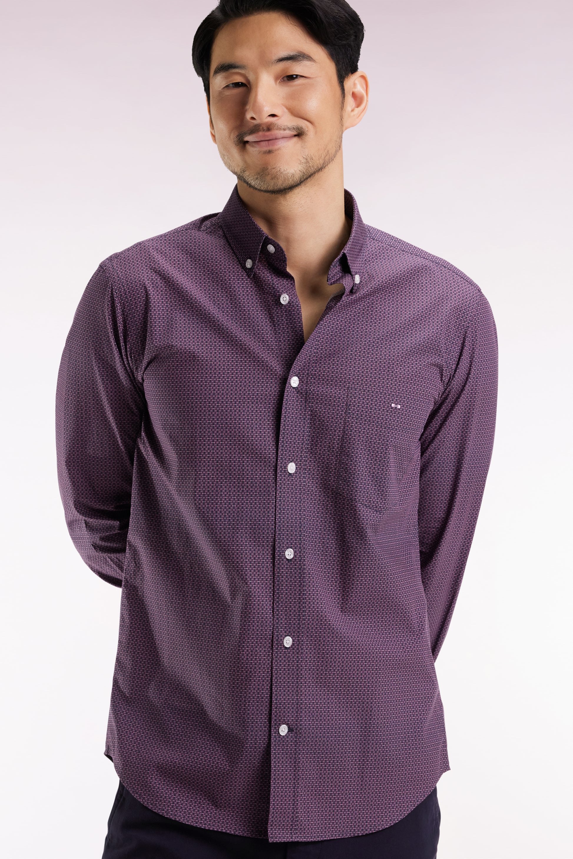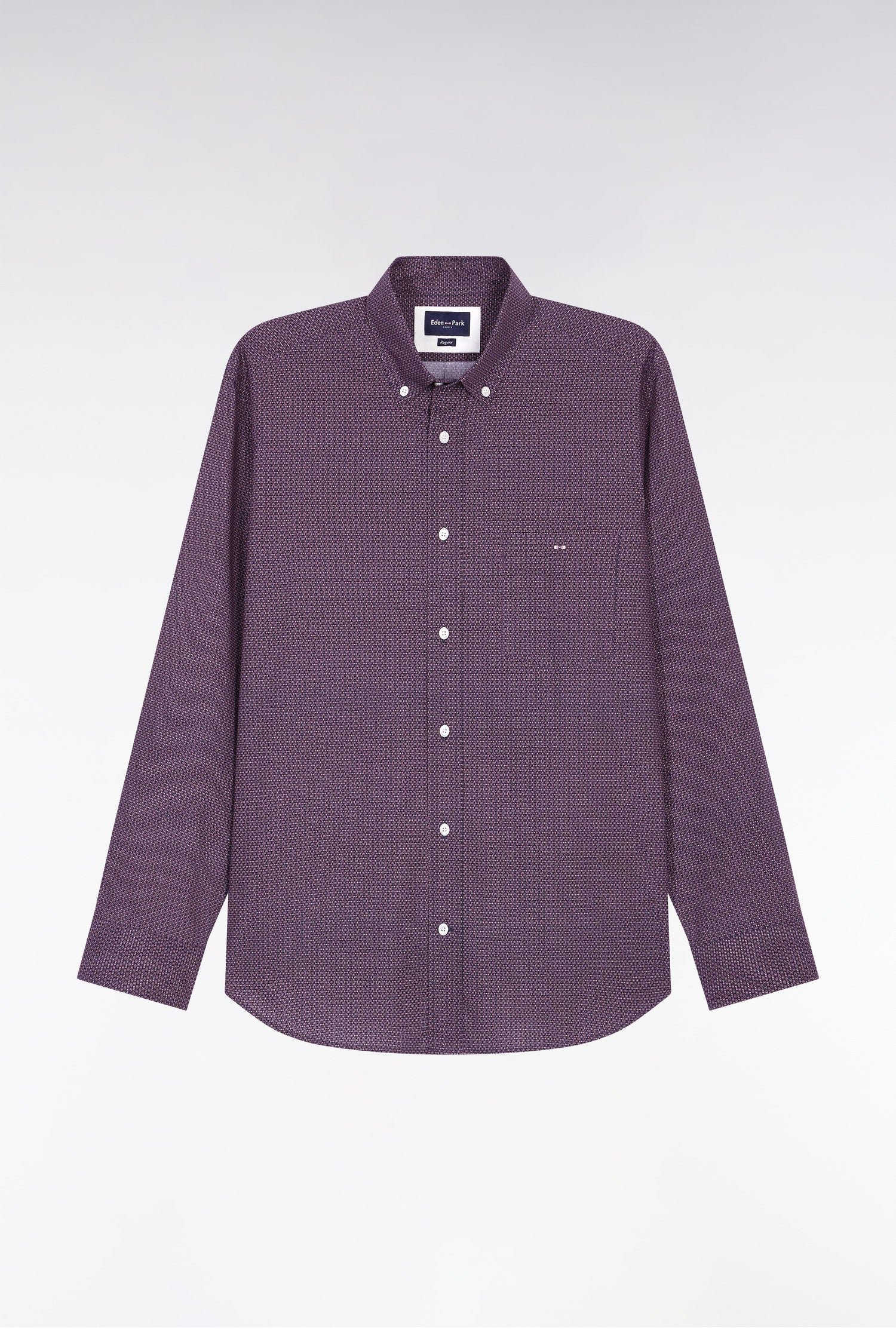 This men's shirt with its playful graphic print illustrates Eden Park's taste for detail. Its exclusive micro-pattern is composed of our emblematic bow tie and an ovoid shape, reminiscent of a rugby ball. Perfect for a polished silhouette on any occasion, in any color.