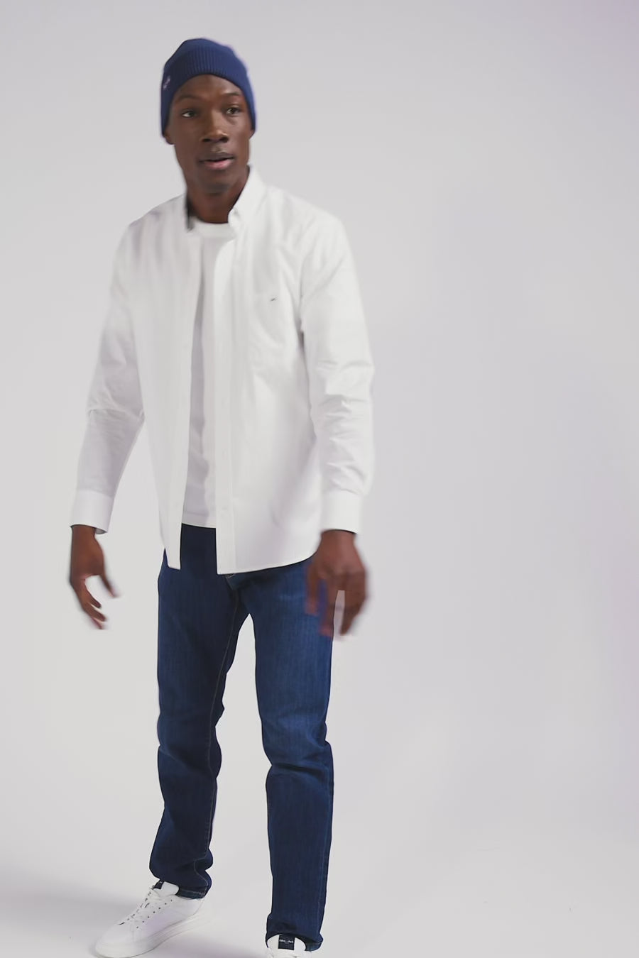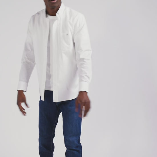 Regular white cotton poplin shirt with button-down collar and printed elbow patches