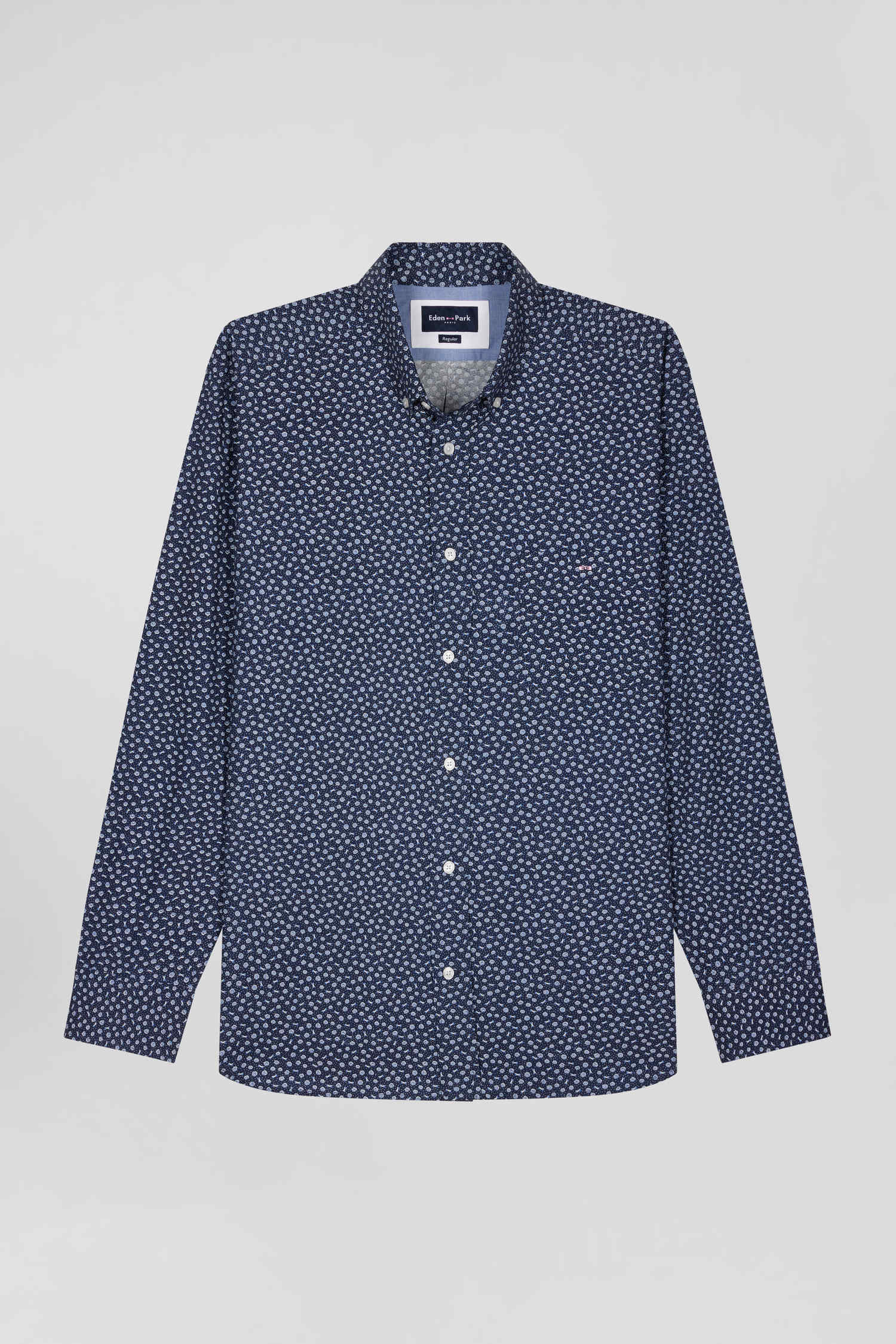 This comfortable cotton poplin shirt features a floral print for a graphic silhouette. This straight-cut men's shirt features a casual patch pocket embroidered with our emblem and a button-down collar.