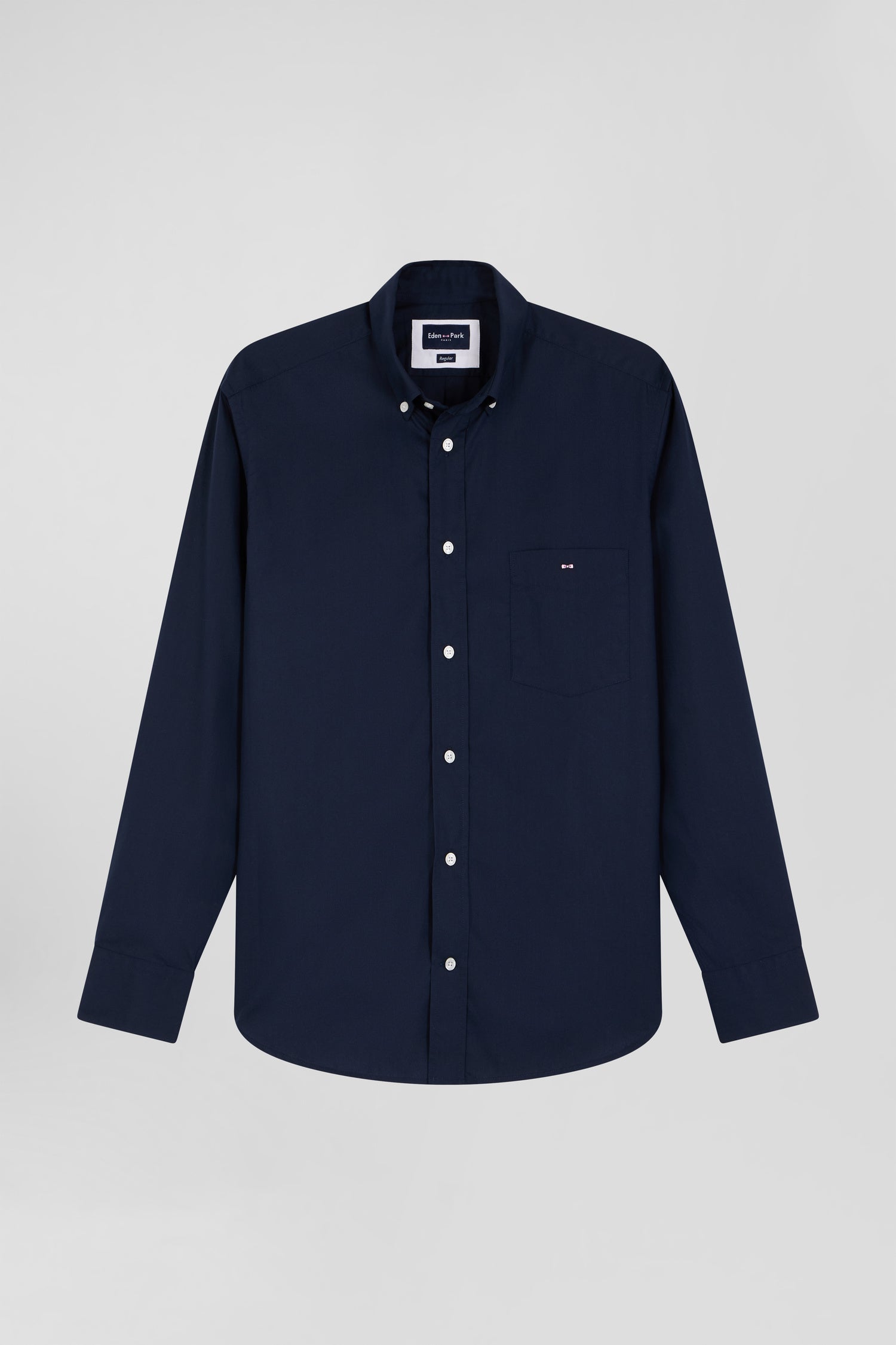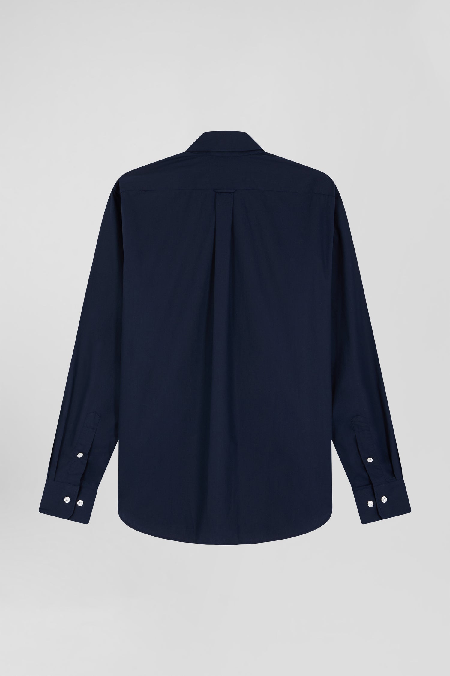 Regular plain navy blue cotton poplin shirt