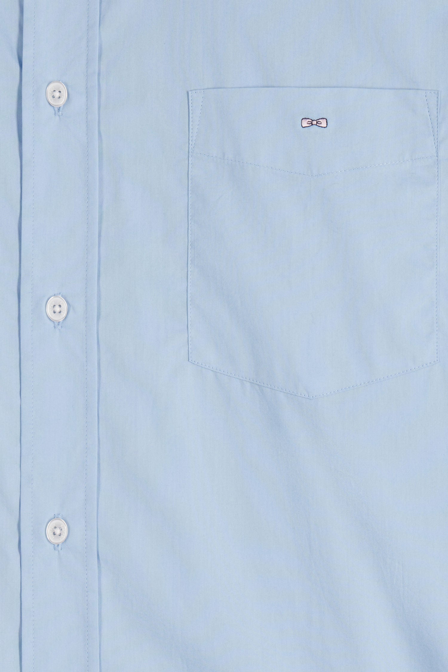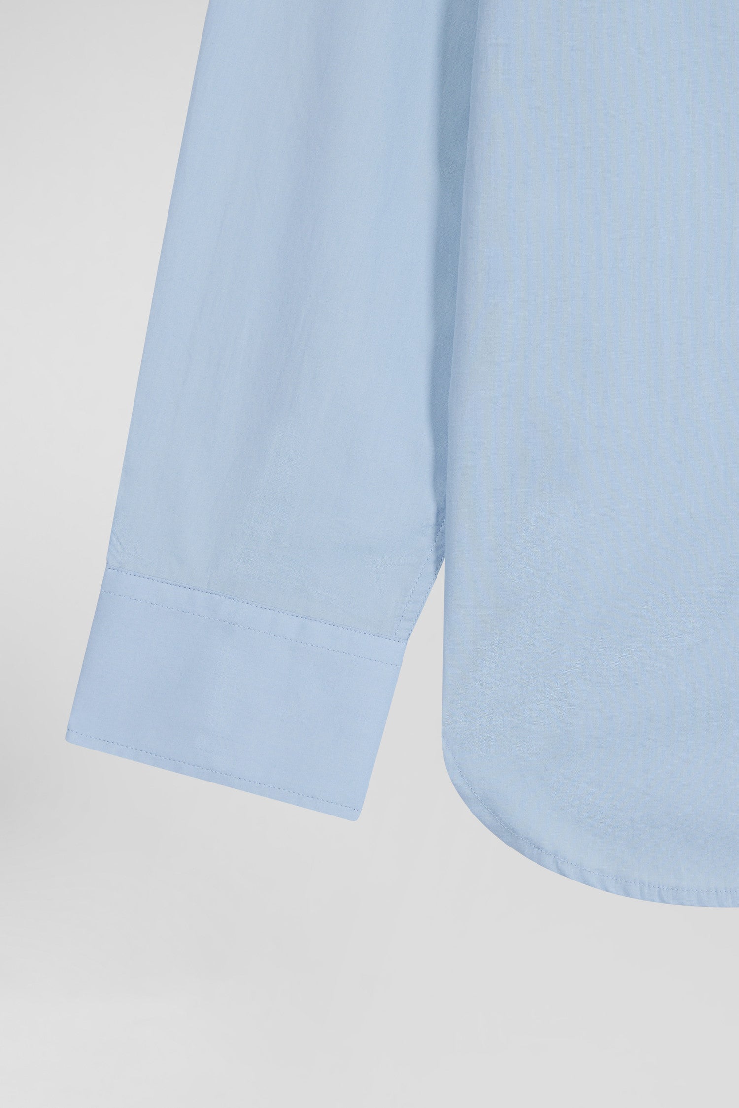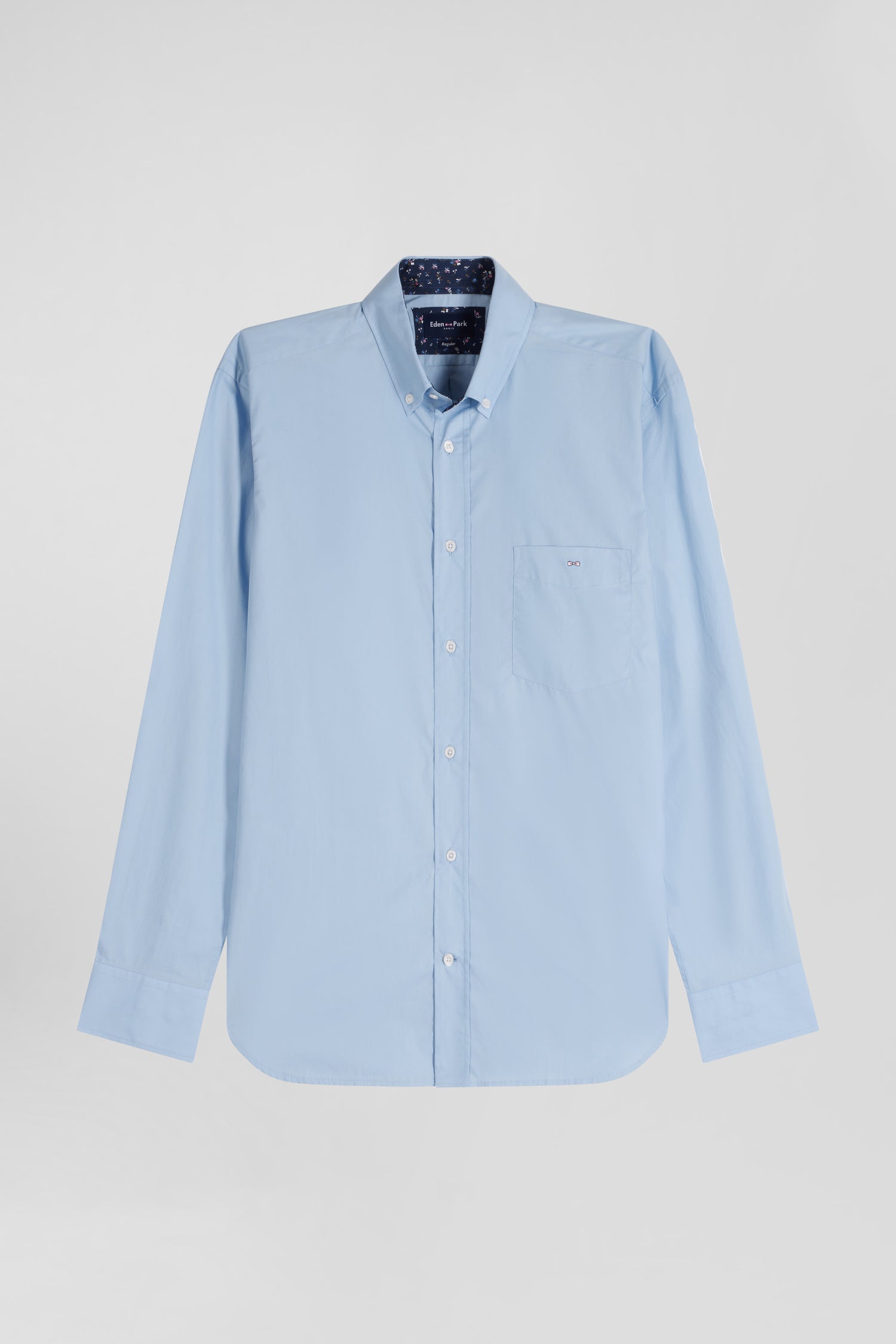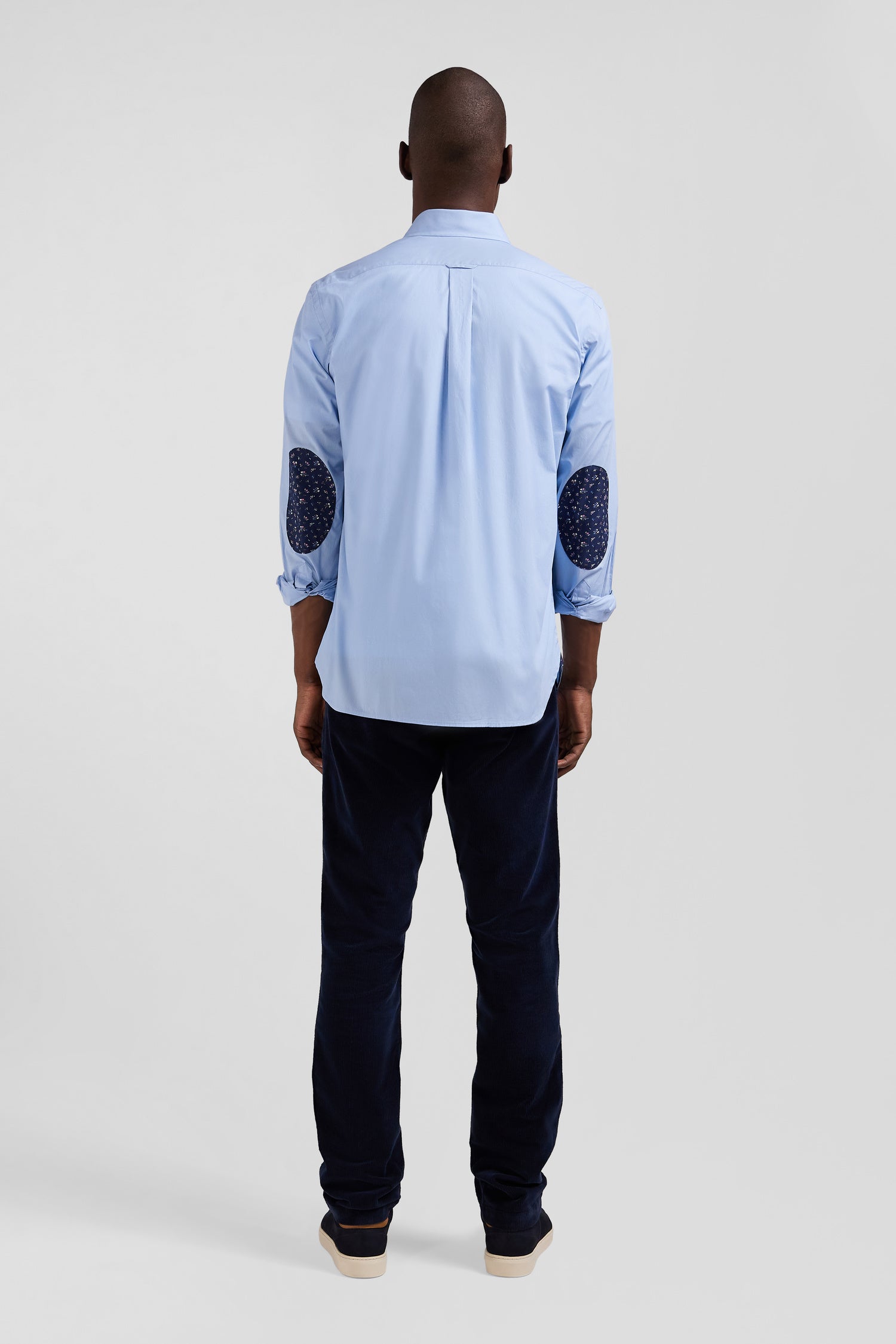 Regular sky blue cotton poplin shirt with button-down collar and printed elbow patches