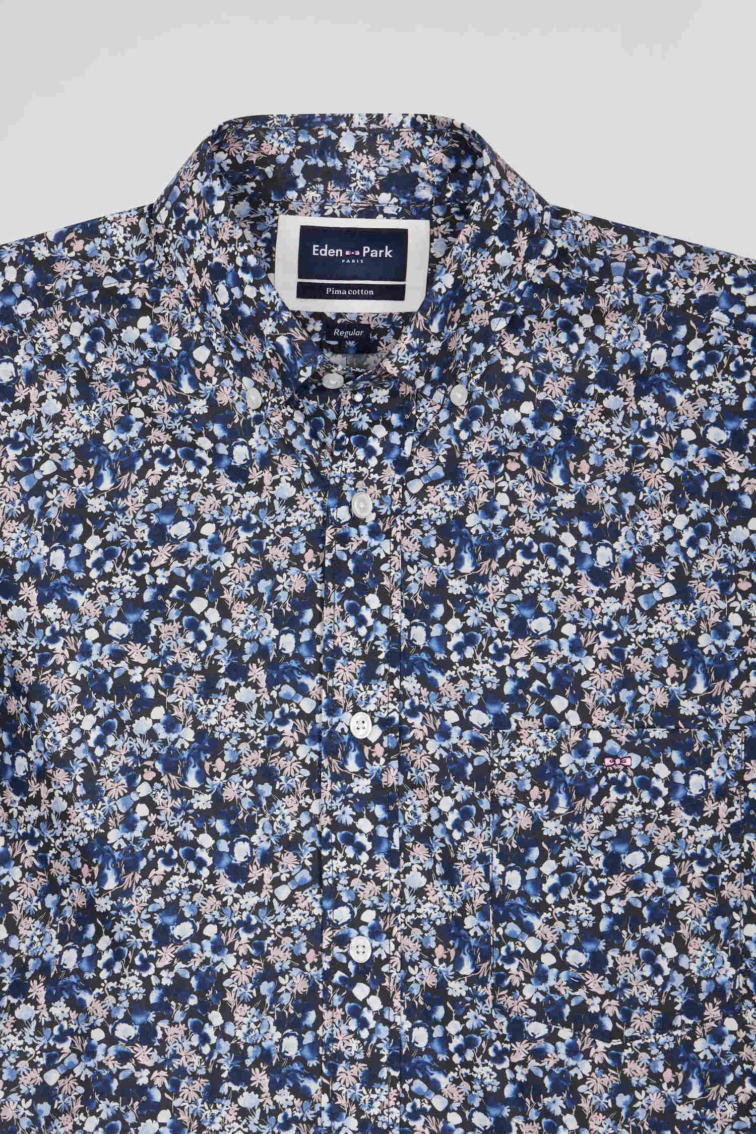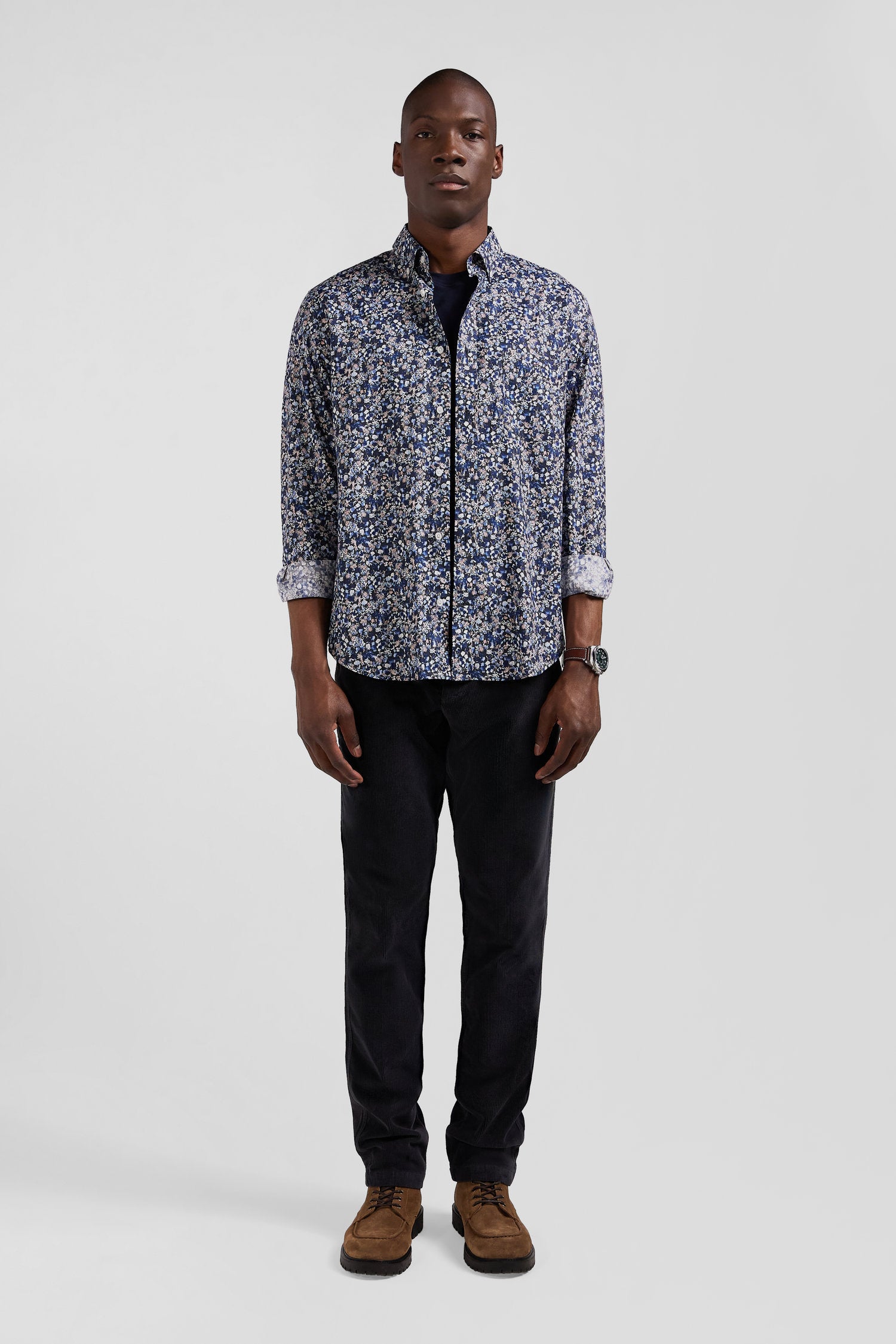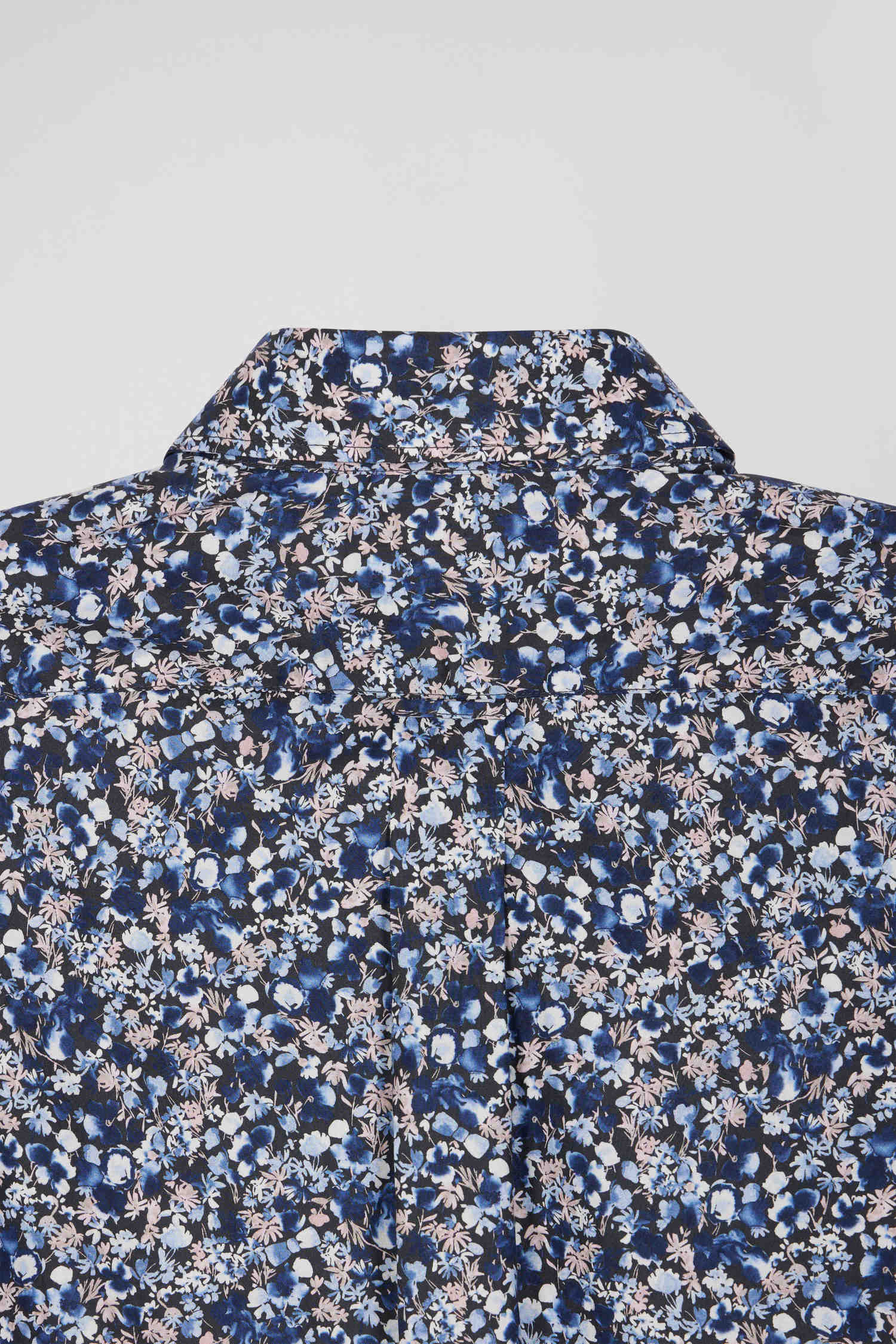 Regular navy blue Pima cotton poplin shirt with micro floral print