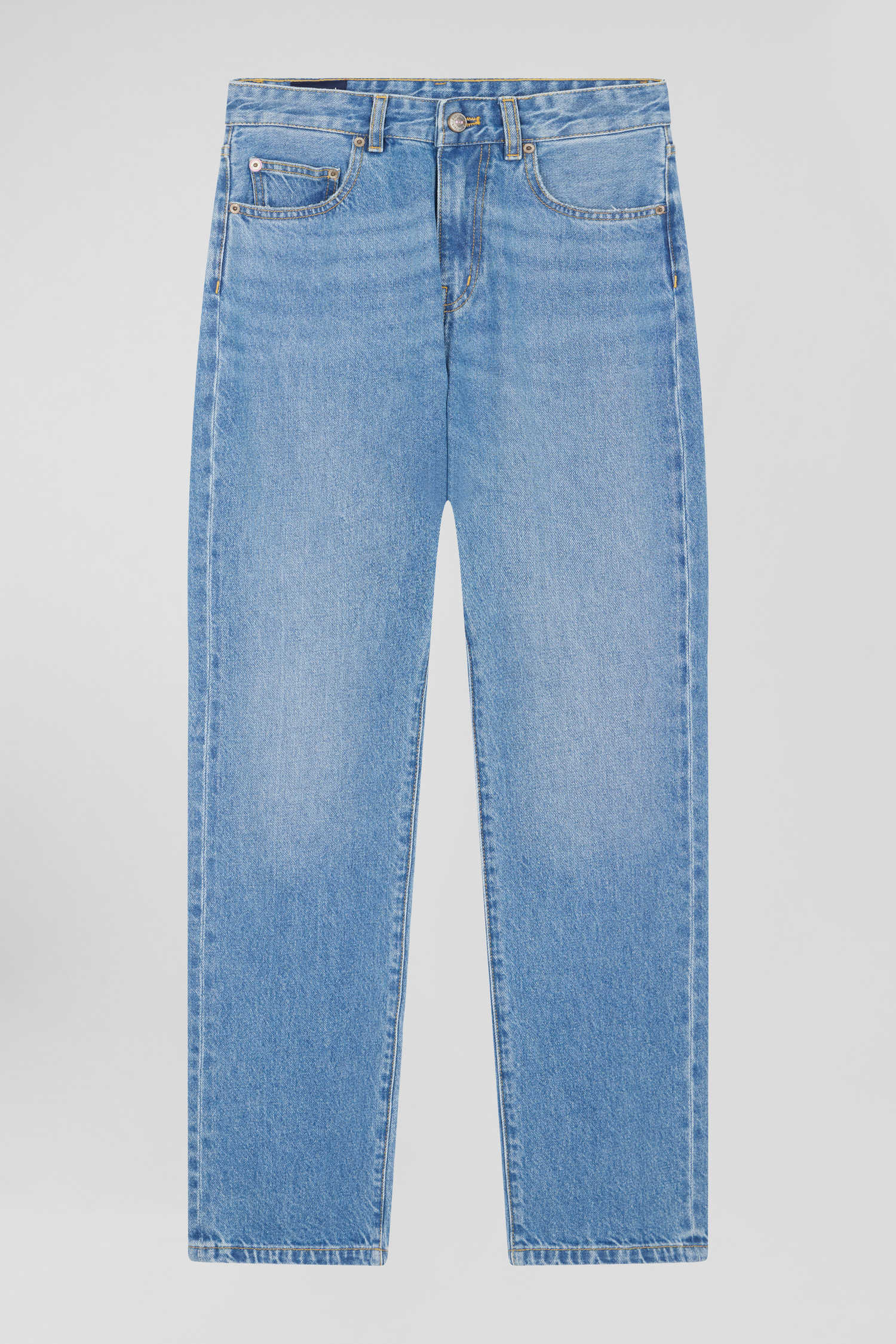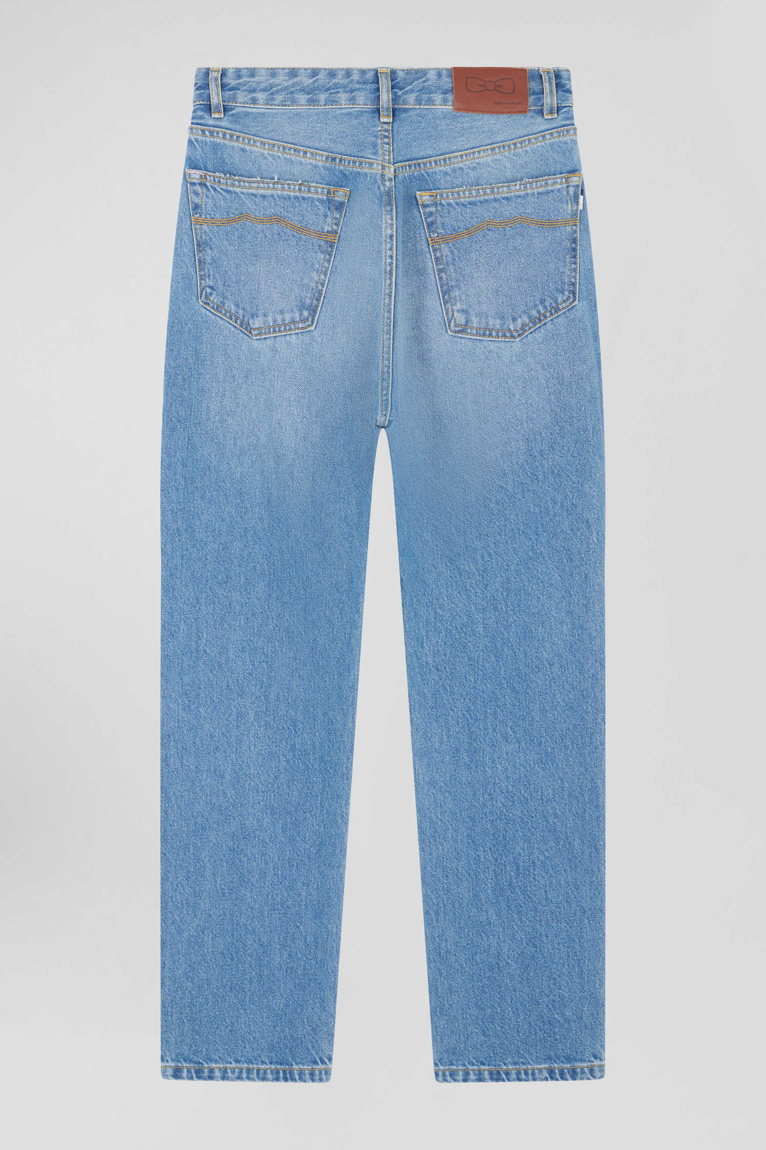 Our women's blue denim jeans are ideally suited to any lifestyle. Its straight Regular fit offers comfort and elegance, making these jeans a must-have for your everyday wardrobe. Perfect for everyday wear, these 5-pocket jeans are a testament to the quality and durability of our fashion collections.