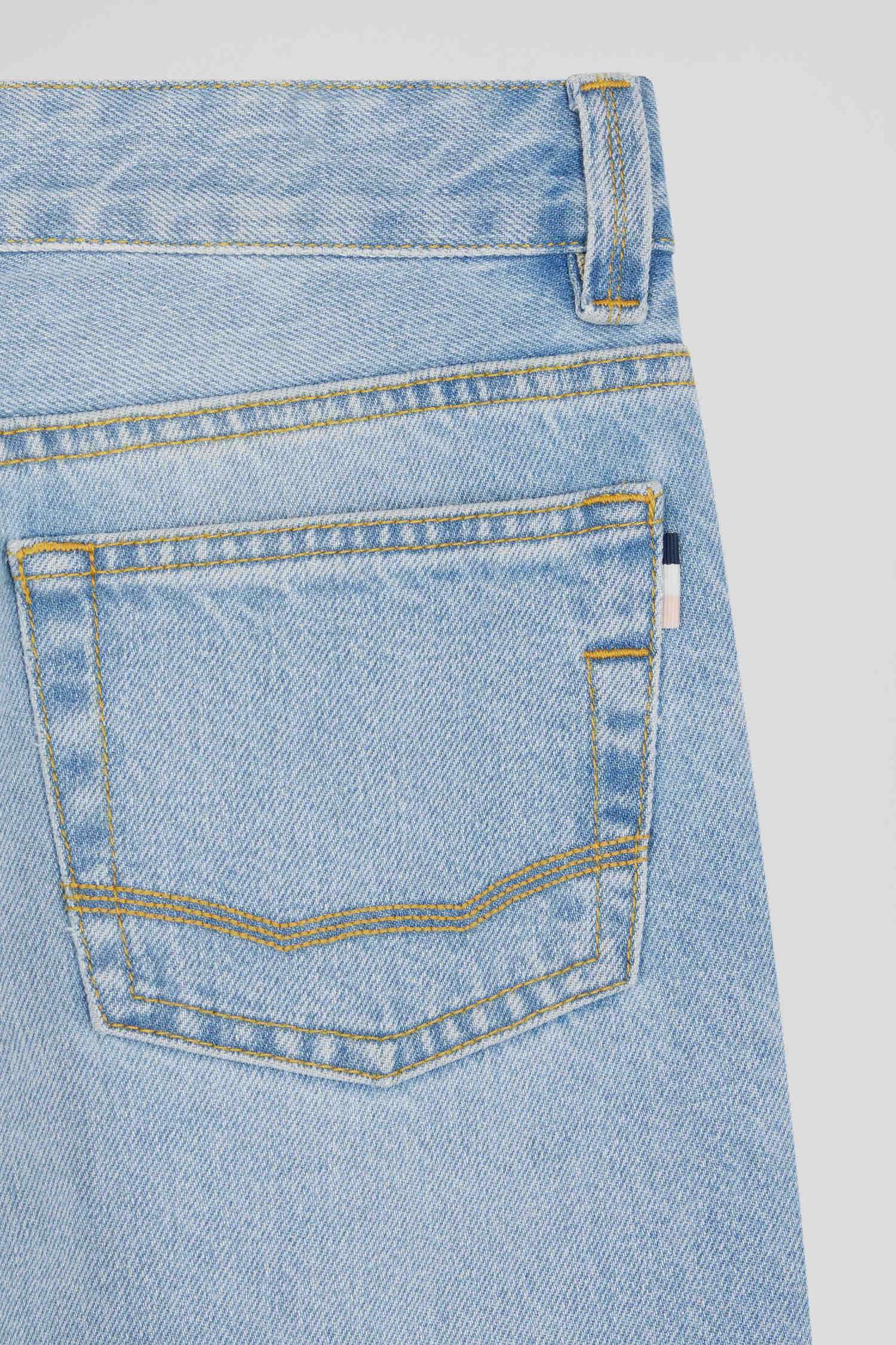 Discover our oversized jeans for kids, designed in light denim for a modern, on-trend look. These pants feature roomy pockets and an elegant embroidered bow on the ticket pocket, combining style and practicality. Perfect for everyday adventures, these jeans offer comfort and freedom of movement, while adding a neat touch to their outfit.