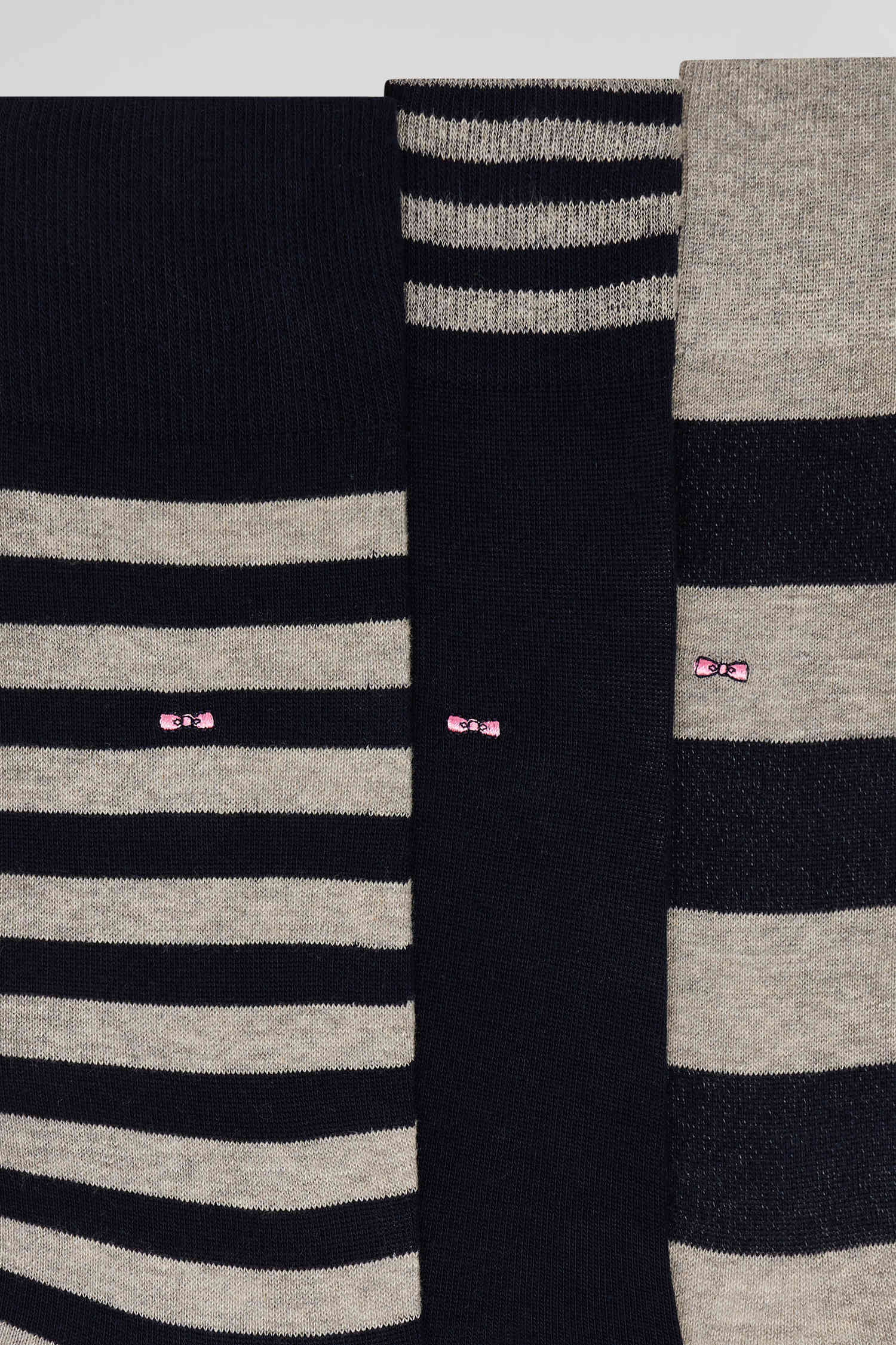 Our horizontal striped knee-high socks have become iconic accessories in the Eden Park men's collections. This set of three pairs of socks, available in blue, grey or coffee shades, is a perfect match for the autumn-winter wardrobe.