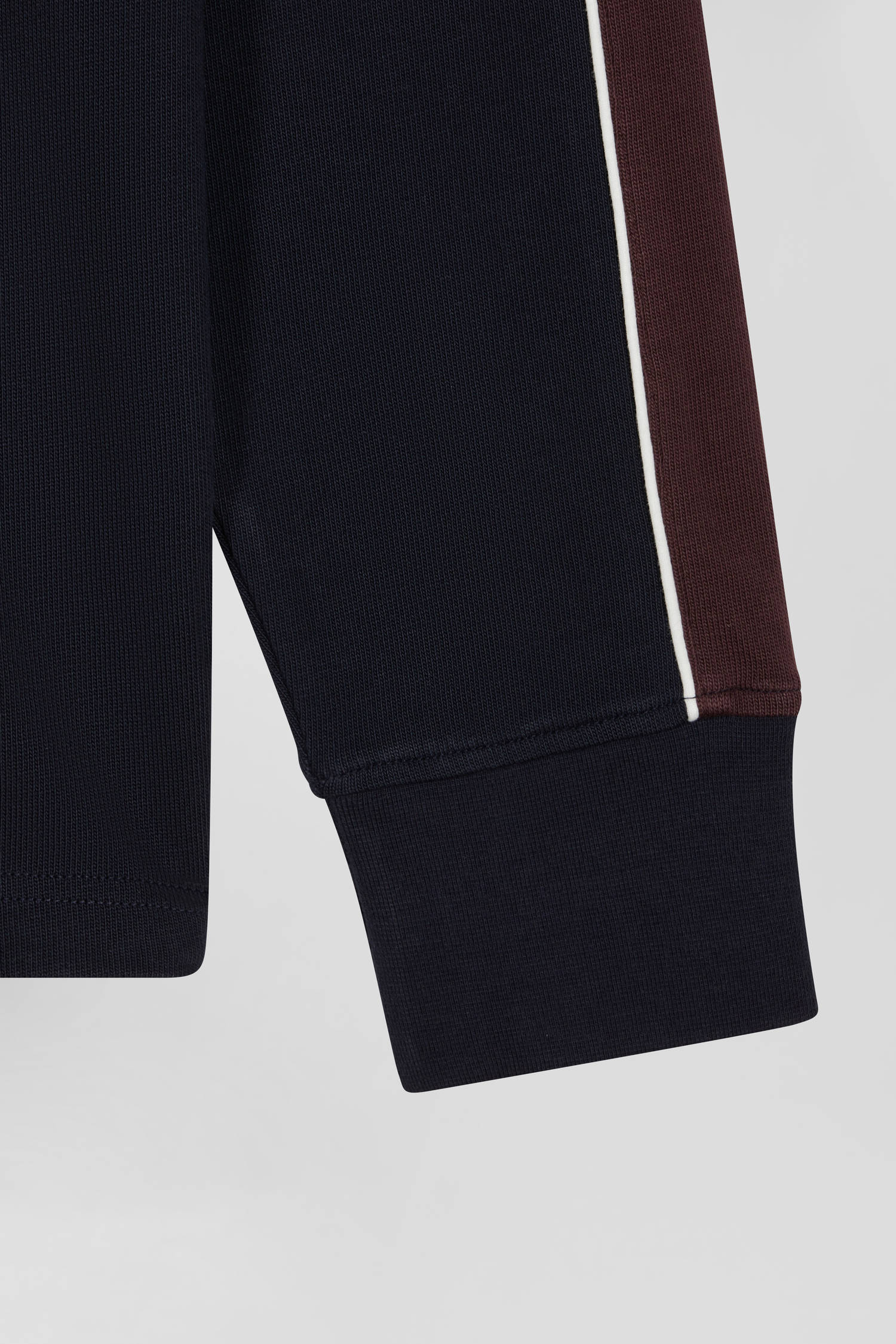 Long-sleeved jersey in hazelnut cotton with back embroidery and regular fit piping