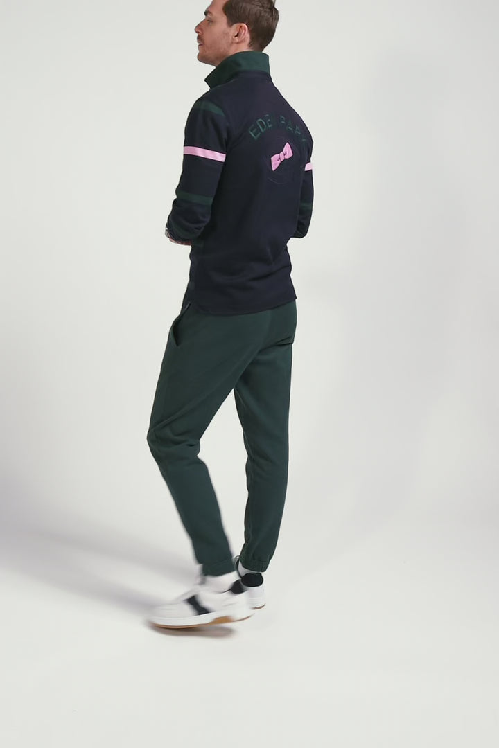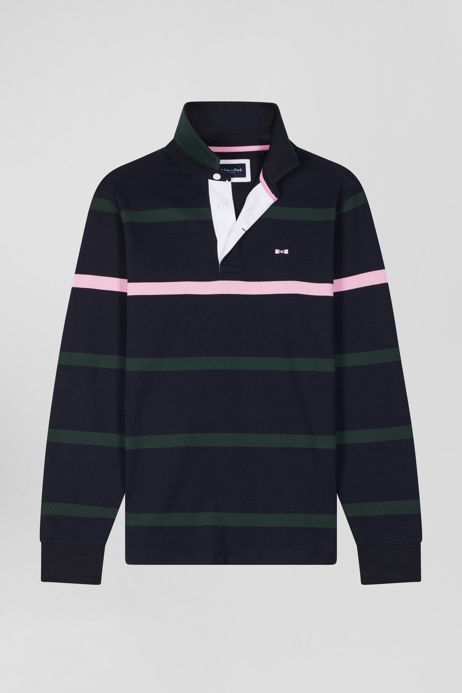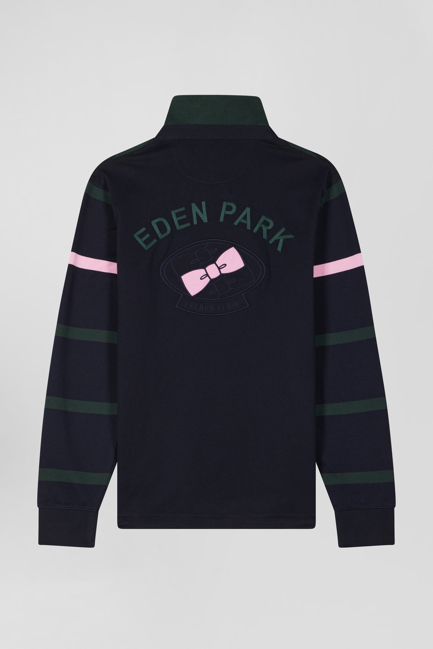 Regular green striped long-sleeved cotton rugby shirt with back embroidery