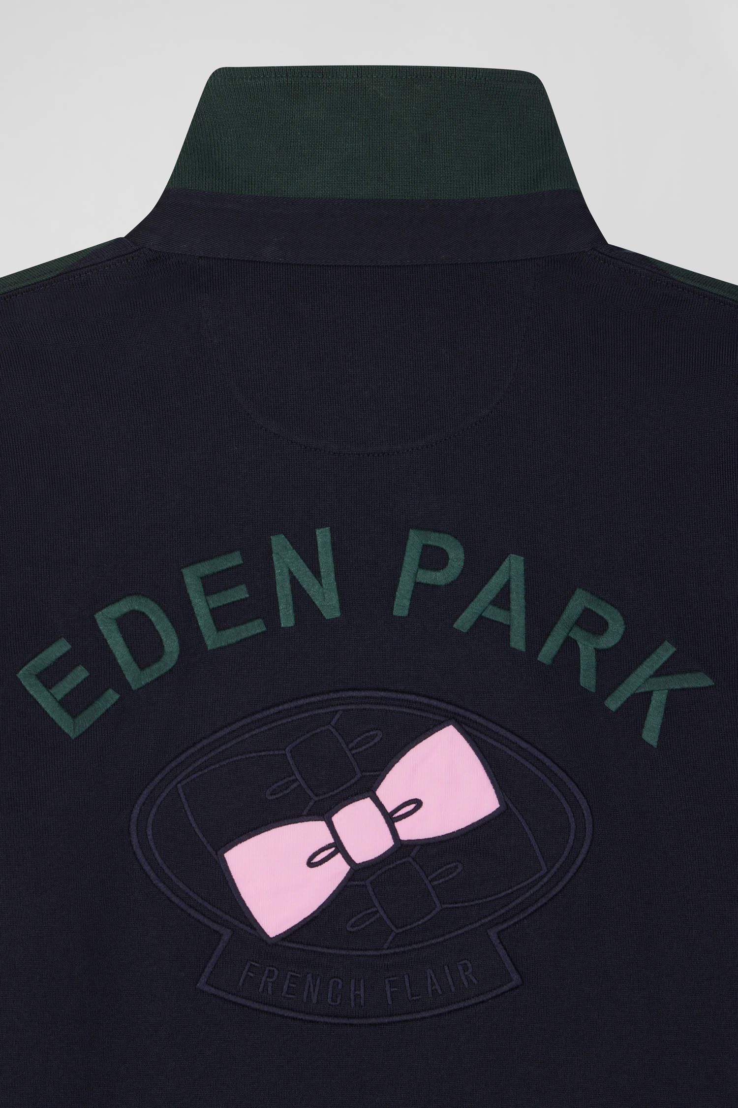 • Pink bowtie emblem embroidery
