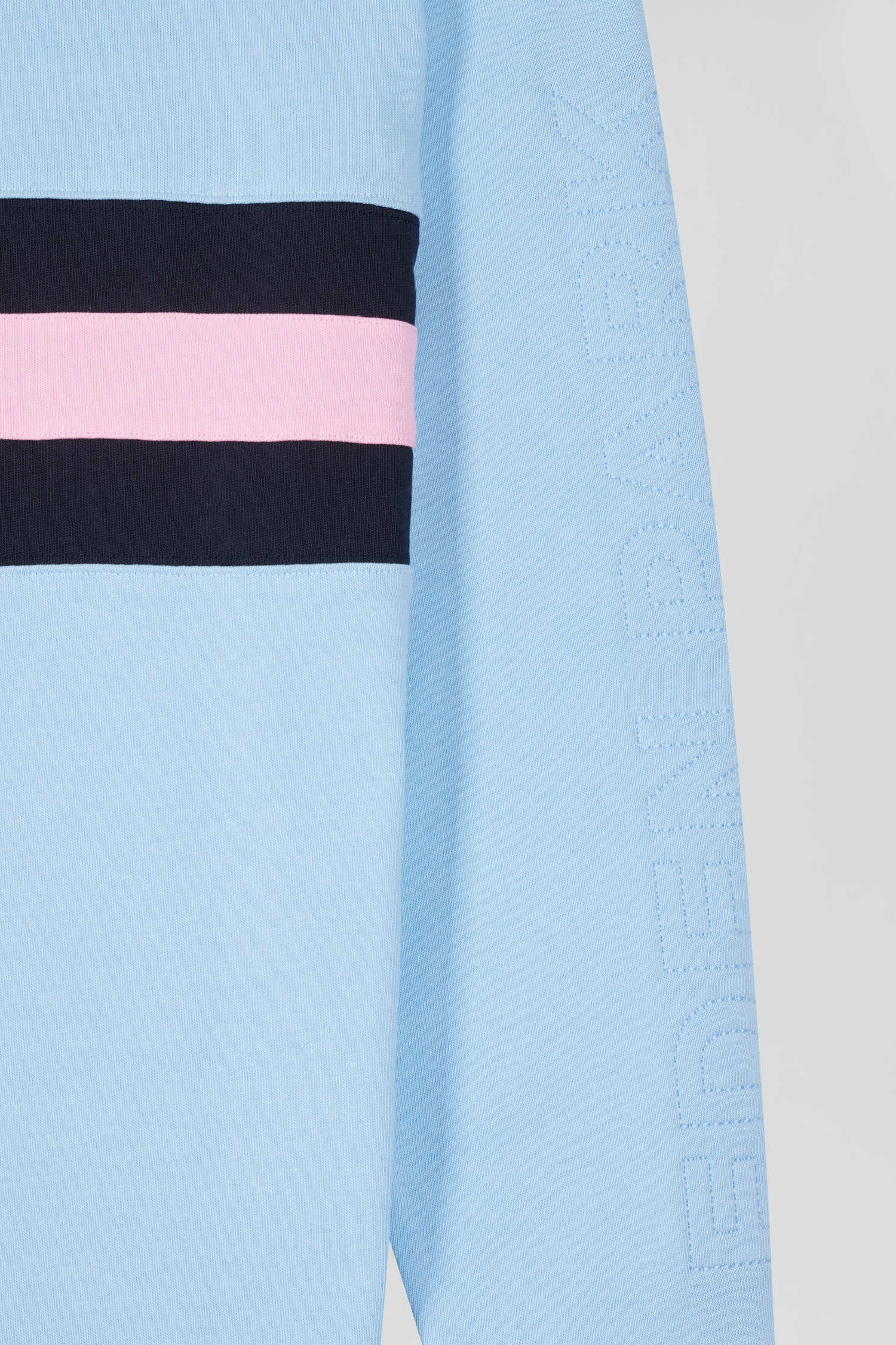 Relaxed sky blue embroidered long-sleeved cotton rugby shirt