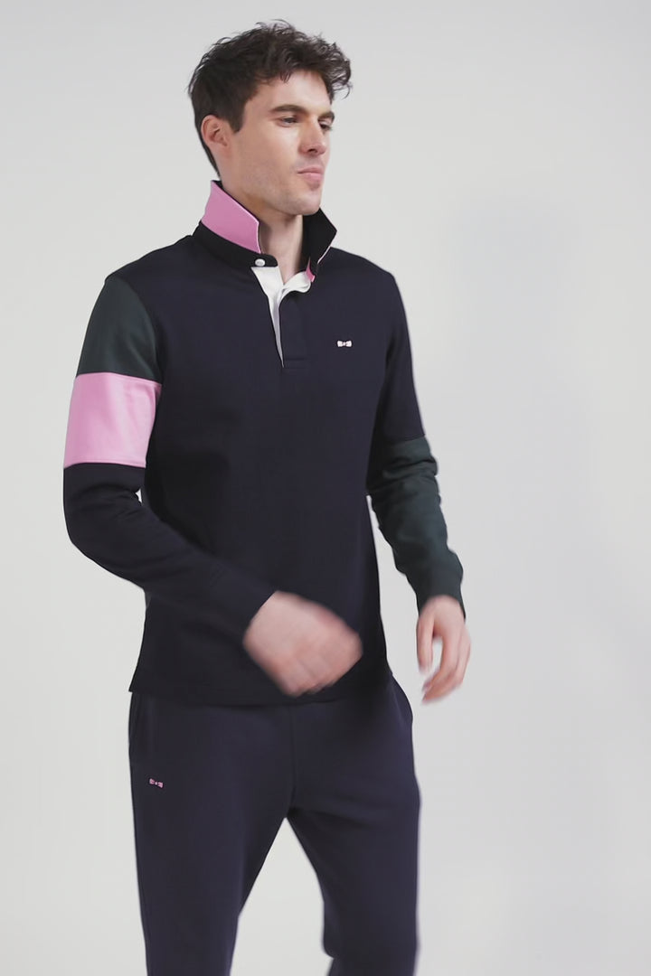 Set your sights on distinctive style with this men's long-sleeved jersey that fuses ease and sporty elegance. The regular fit and choice of pure cotton are complemented by subtle color schemes, mismatched sleeves and refined details such as number 10 embroidery and hooped tie fabric appliqués on the back. An essential with a rich rugby heritage to wear with chino or denim pants.