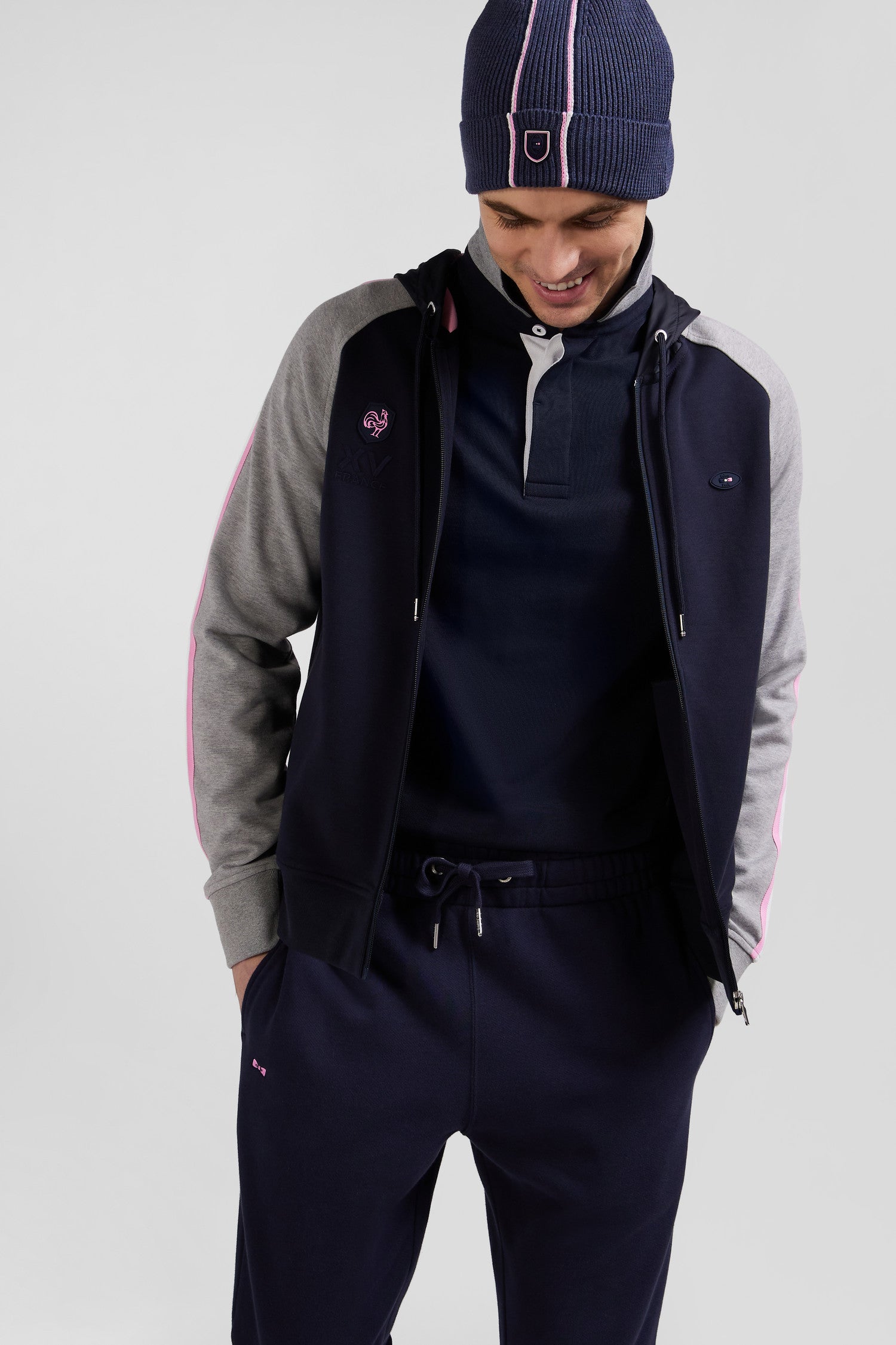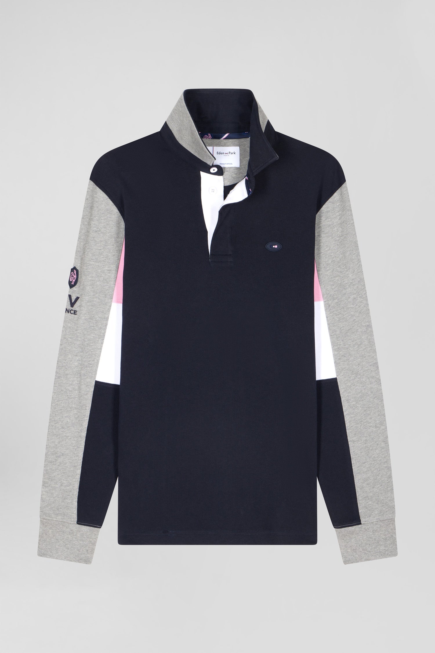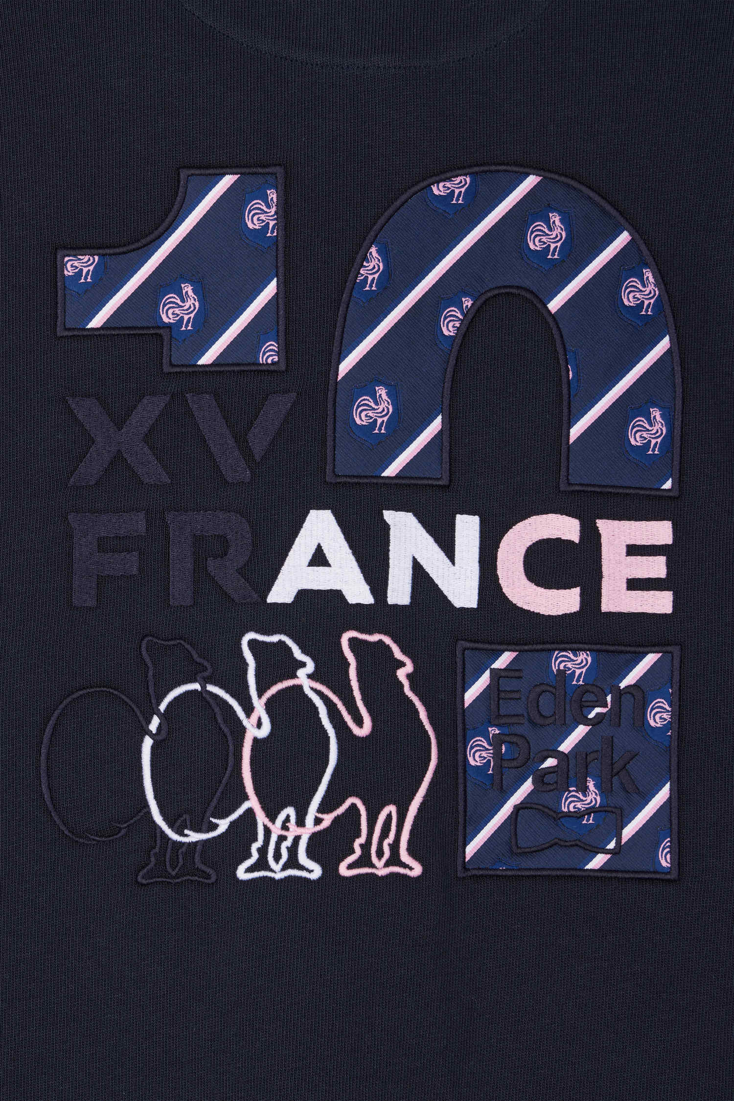 Regular navy blue XV de France long-sleeved cotton rugby shirt