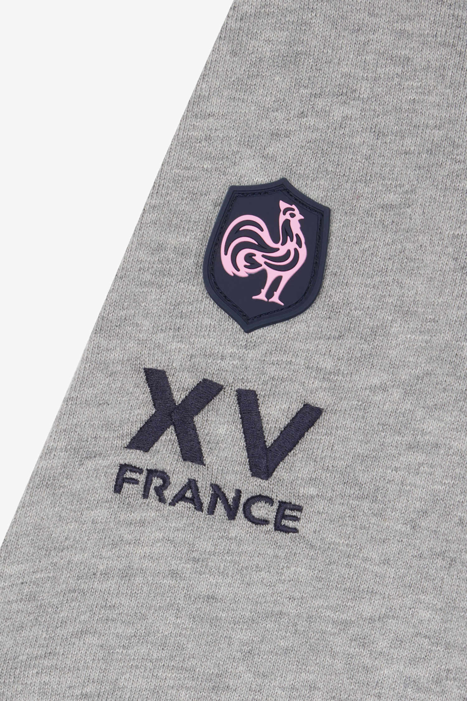 With this XV de France jersey, your style acquires a sporty twist in the blink of an eye. A tribute to the emblematic rugby jersey, this model is beautifully finished with embroidery and tie fabric featuring the iconic emblem of the XV de France: the French rooster. Made from luxurious cotton, this men's jersey can be worn with a jan or 5-pocket pants.