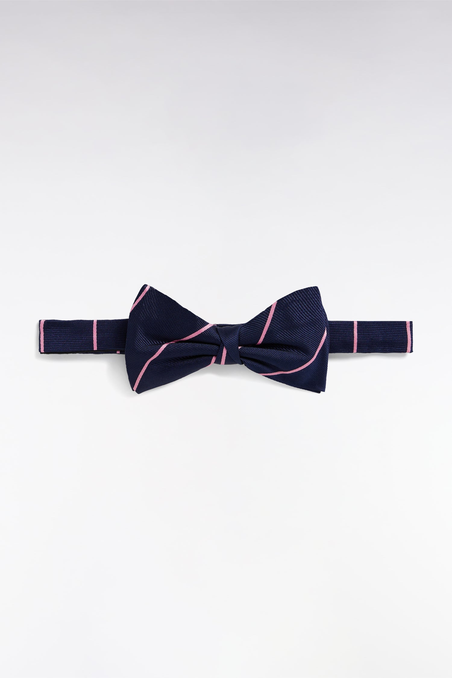 Ce nœud papillon en soie marine revisite un accessoire classique avec une élégance sport chic assumée. Son collier rayé rose, inspiré des maillots de rugby et des codes signature de la Maison, apporte une touche graphique distinctive. Un modèle raffiné, idéal pour ponctuer une silhouette avec caractère et modernité.