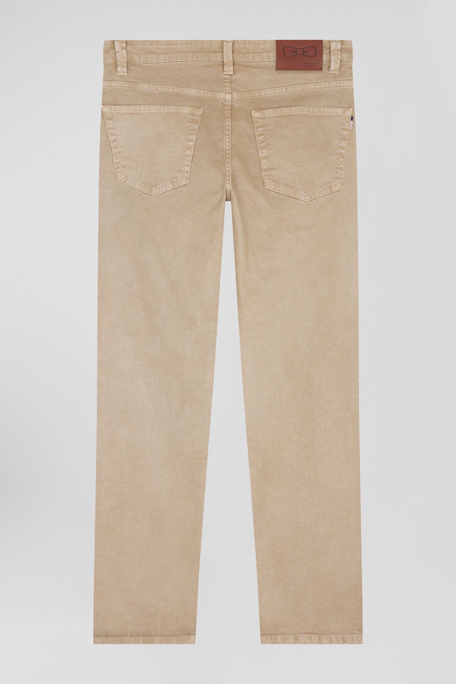 Regular hemp-coloured stretch cotton 5-pocket trousers