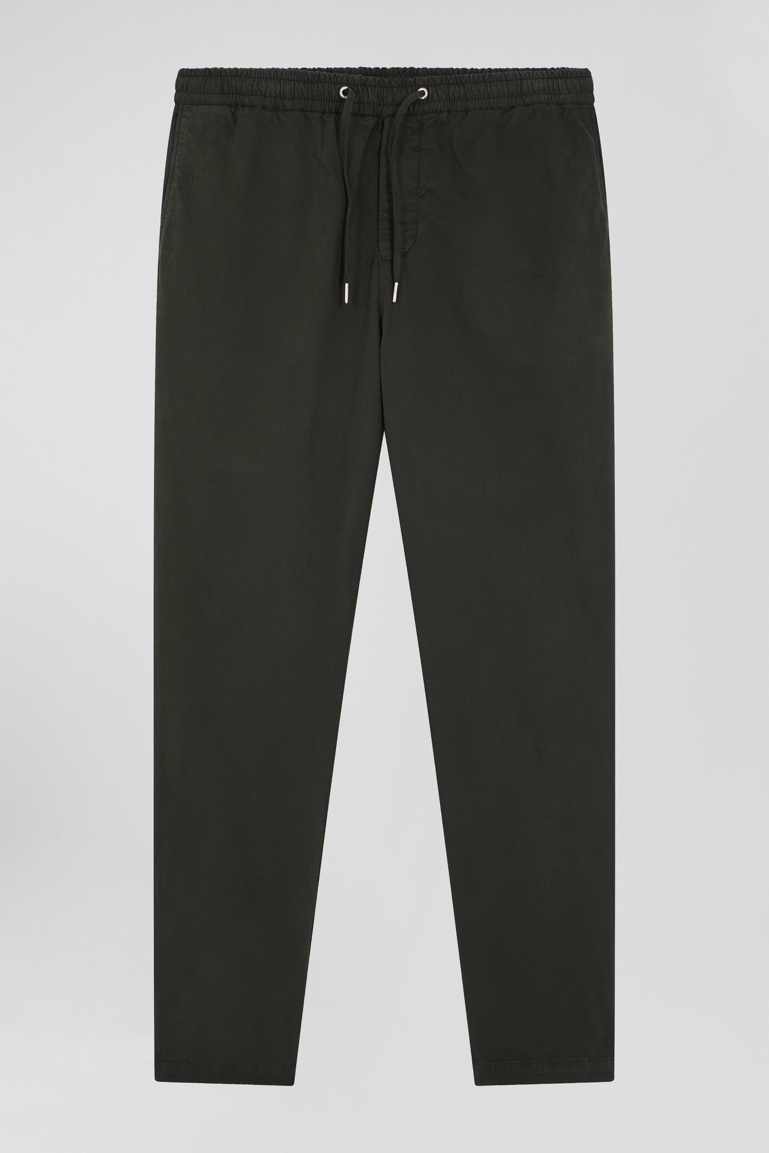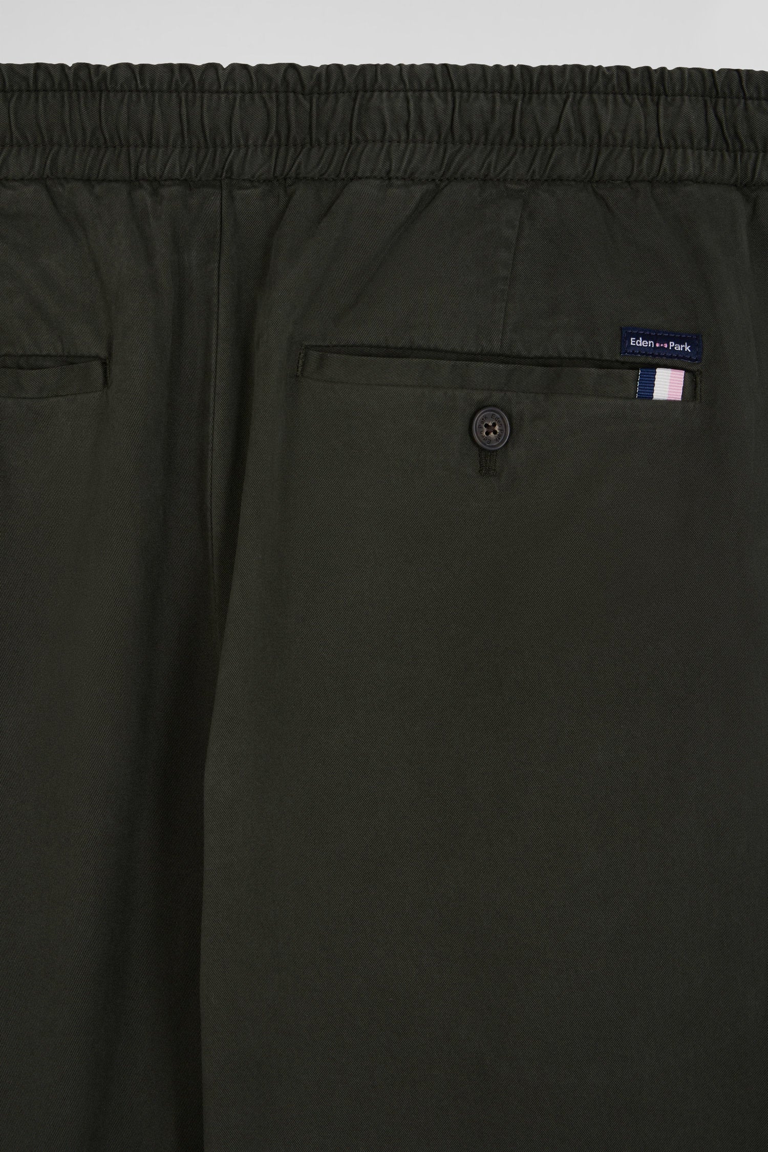 Elastic waistband pants in khaki stretch cotton, Modern cut