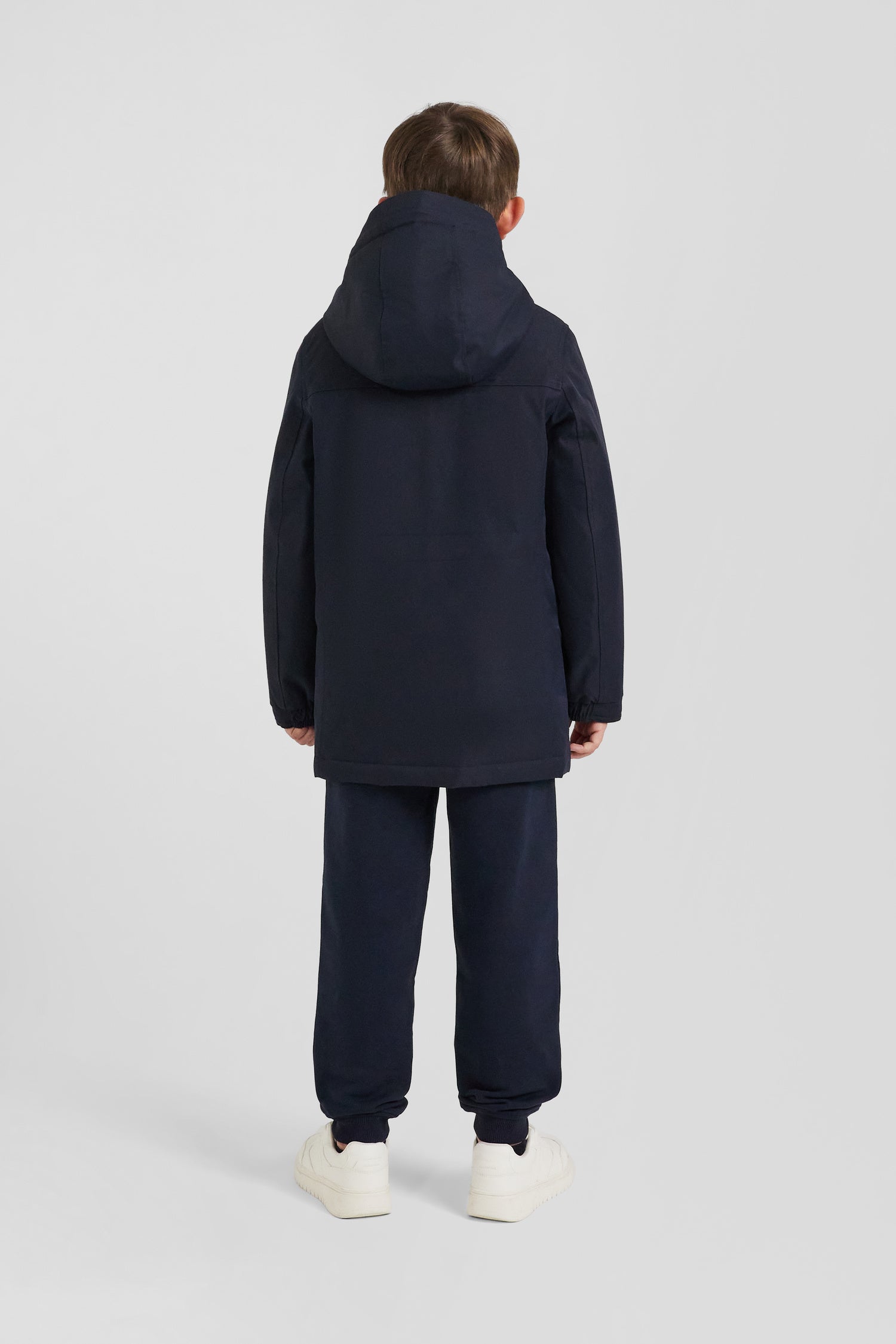With its integrated hood and long cut, this children's parka, available in sizes 2 to 14, will shelter young and old alike. Practical zipped pockets give structure to this long parka in timeless navy blue.