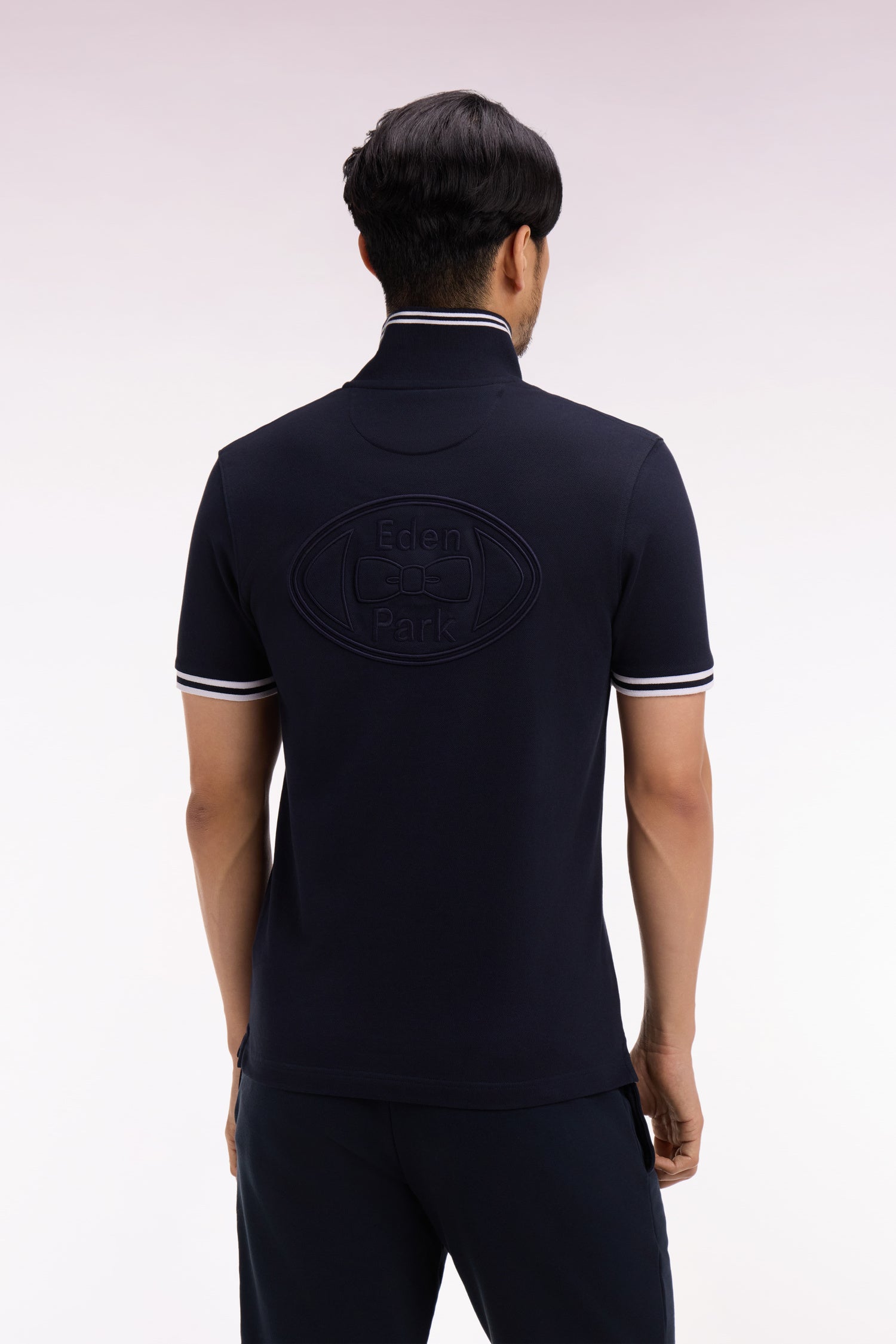 Notre nouveau polo uni assure une allure sport-chic en toutes occasions. Détail élégant, il est doté de fines rayures contrastées en bordures de col et de manches. Un badge en gomme silicone sur la poitrine ajoute au charme de ce polo masculin facile à associer au vestiaire de la saison comme à vos pièces préférées.
