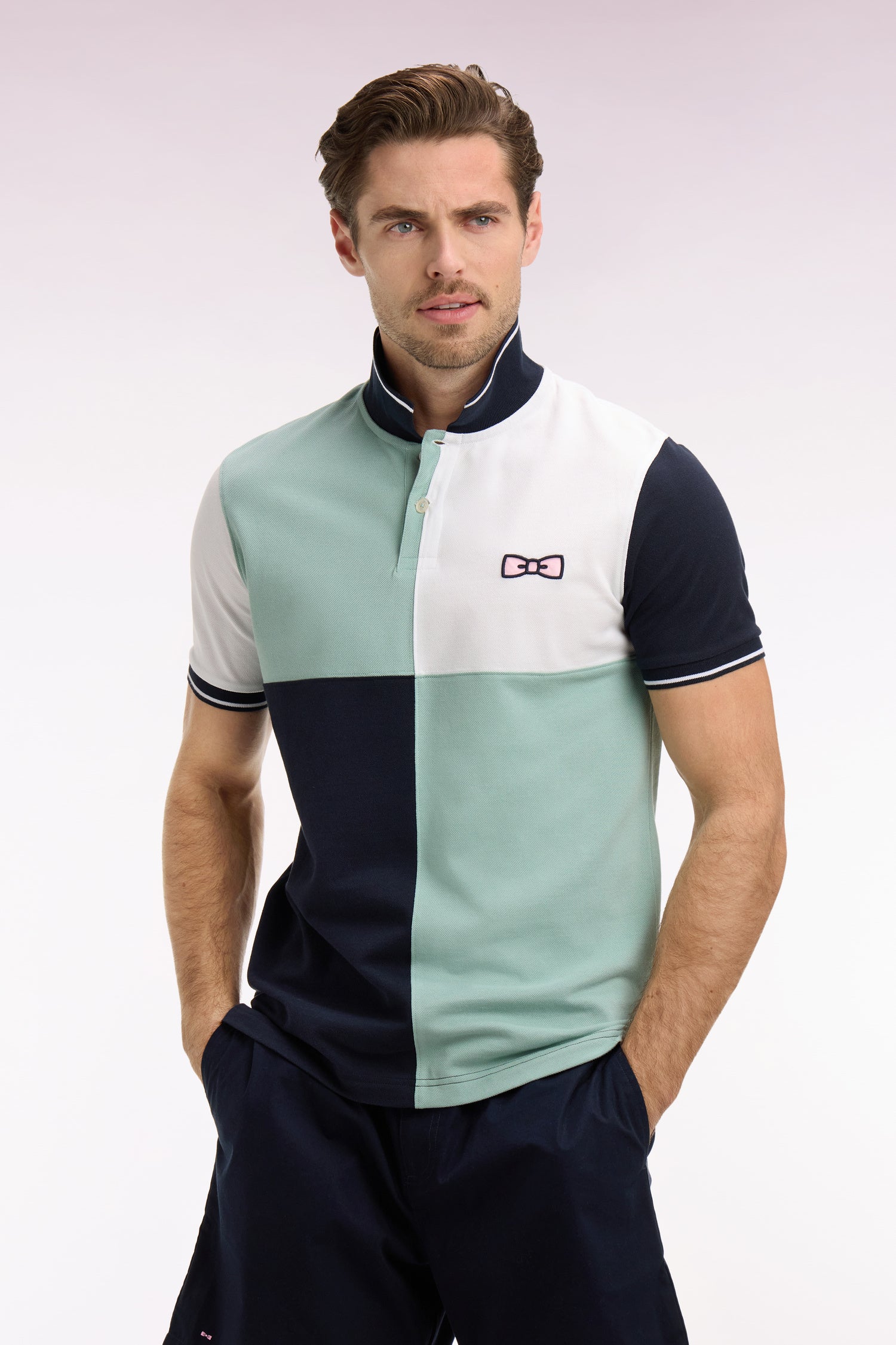 Polo à manches courtes en coton vert d'eau à cadrans coupe regular