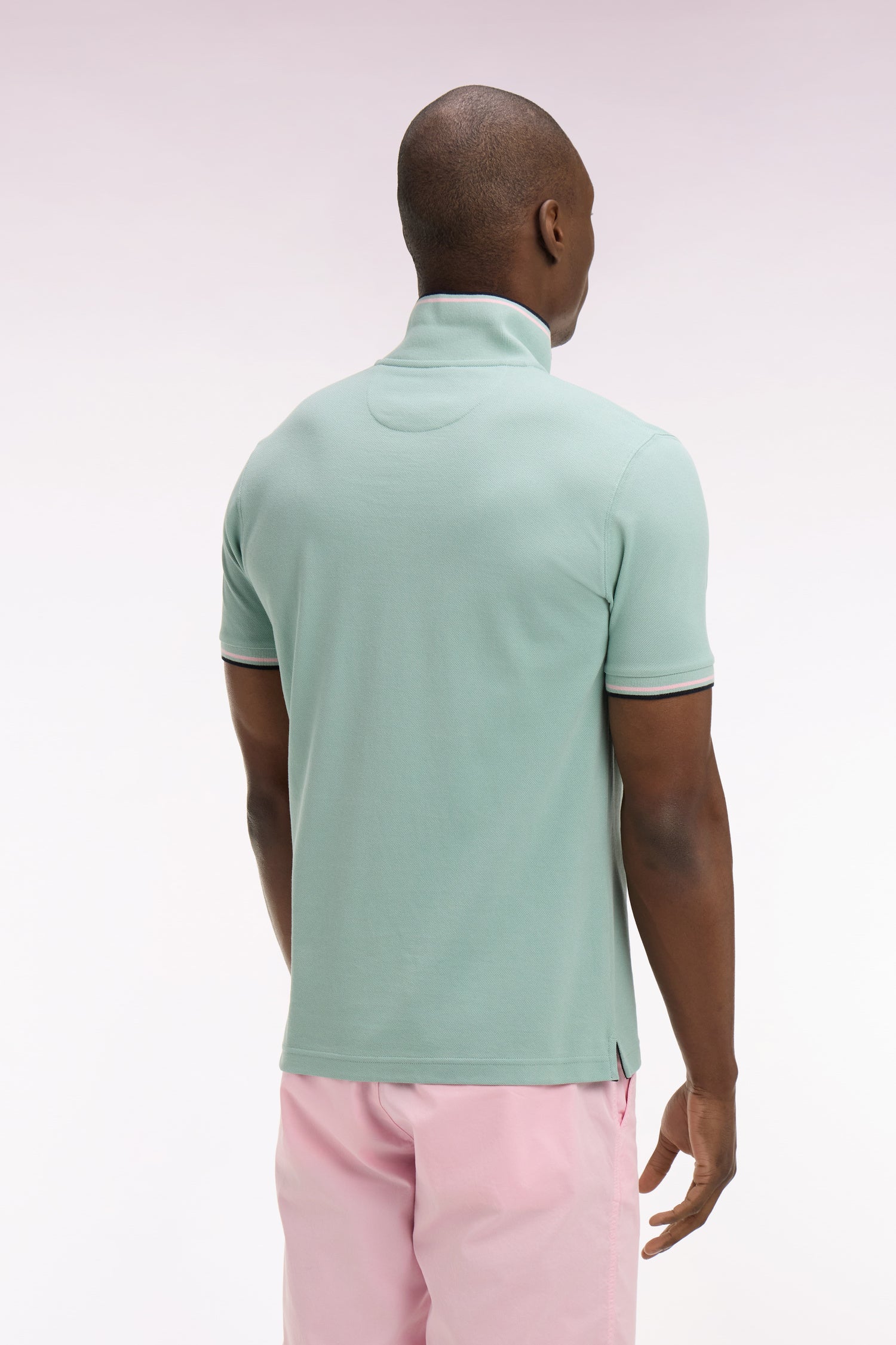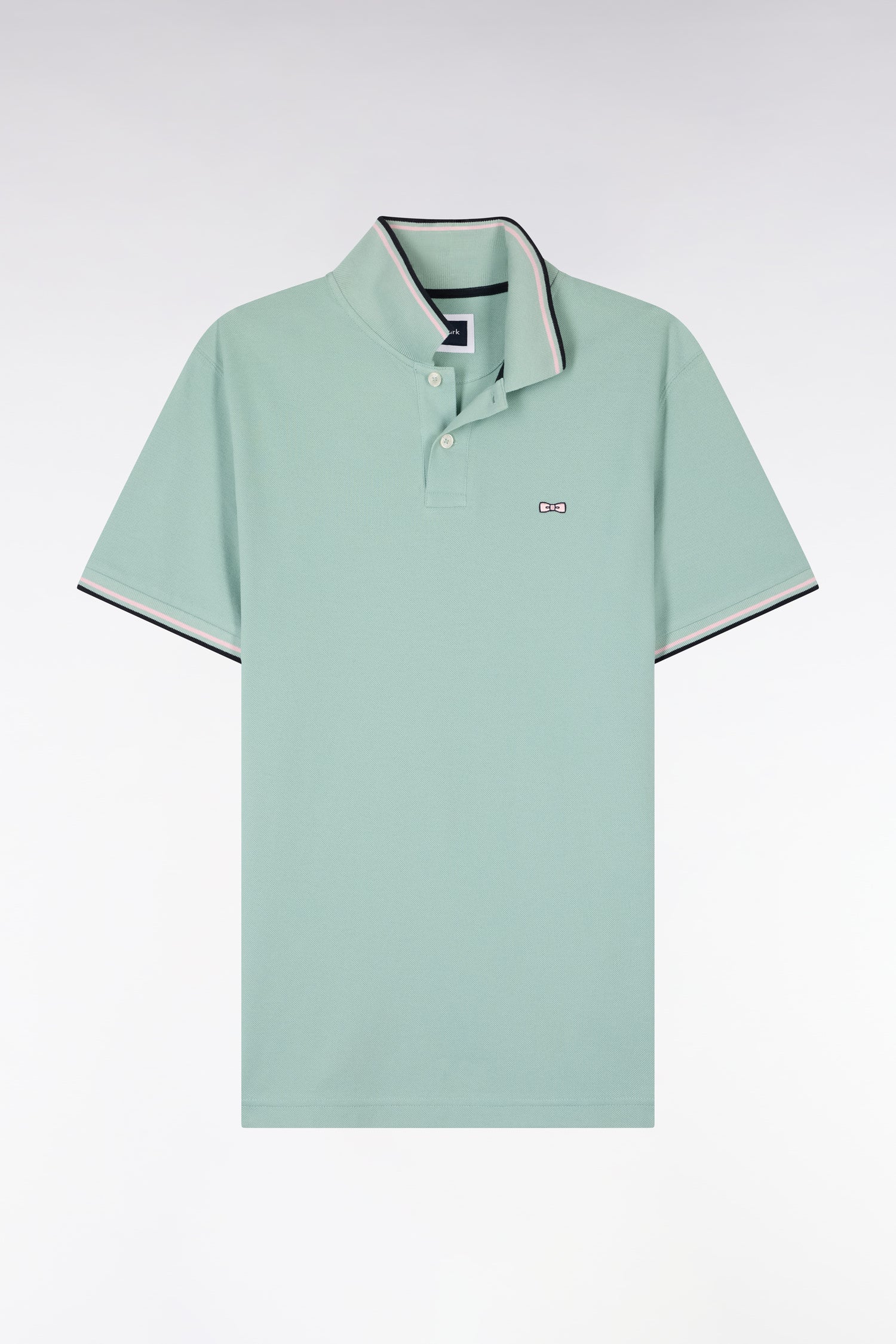 Polo à manches courtes en coton vert d'eau détails rayés coupe regular