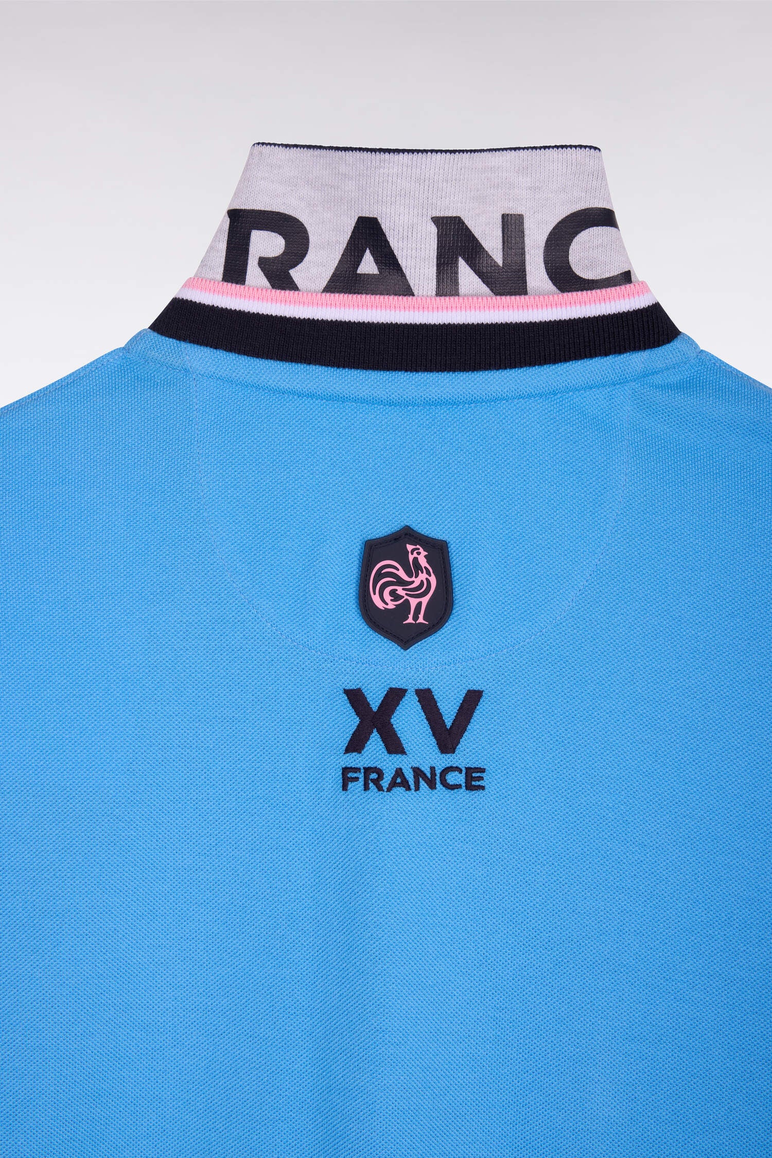 Ce polo en piqué de coton affirme un style résolument rugby grâce à son col sur lequel un tricotage jacquard affirme fièrement son attachement à la France, clin d’œil direct au XV de France. Ses manches contrastées, agrémentées d'une broderie rehaussée de notre iconique tissus cravate, et son écusson officiel FFR en font une pièce forte, pensée pour accompagner les supporters de cette équipe mythique du stade à la ville. Allure dynamique, détails identitaires et esprit sport chic se conjuguent dans ce trio de polos à manches courtes emblématiques de nos collections de mode. À associer avec un jean, un short ou pourquoi pas un chino pour une allure sport-chic.