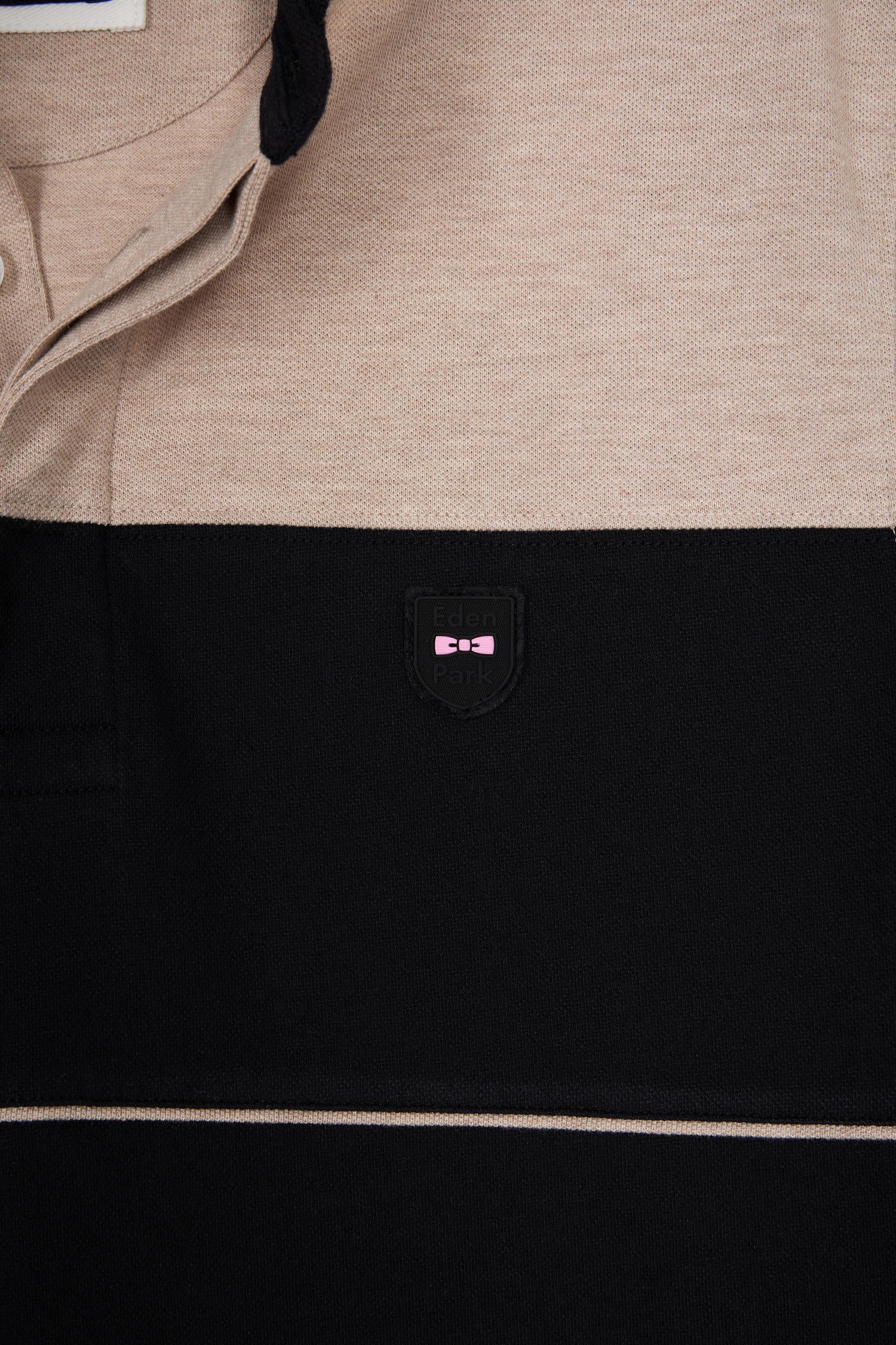 Two-tone short-sleeved polo shirt in black stretch cotton piqué, slim fit