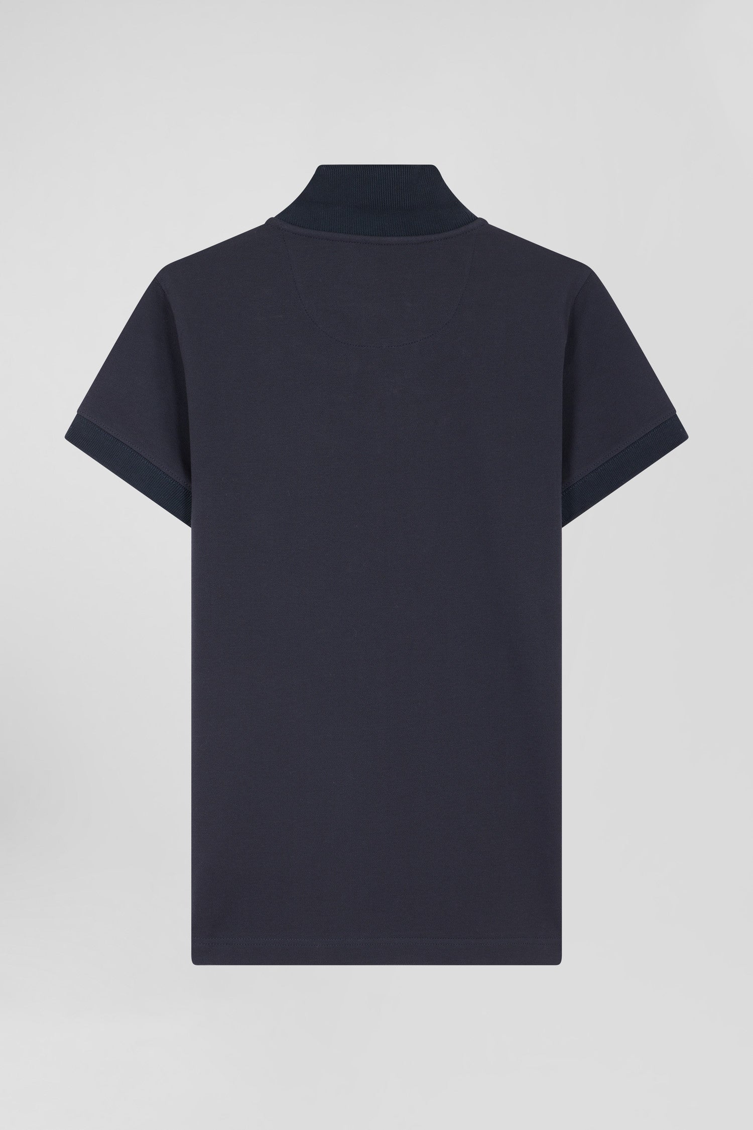 Slim navy blue plain stretch cotton short-sleeved polo shirt