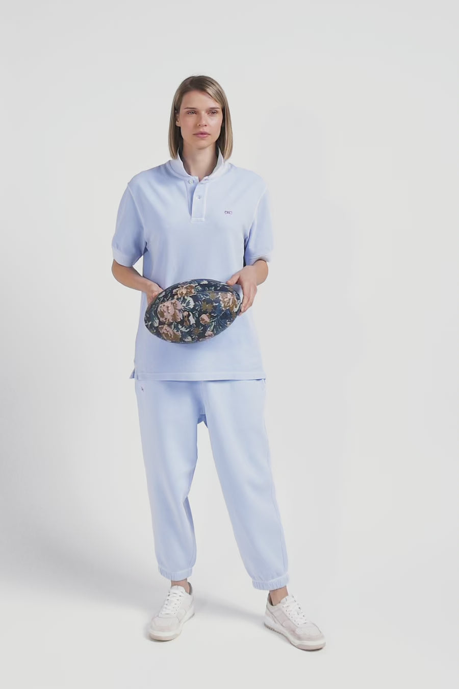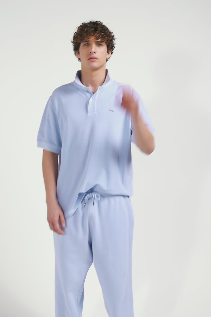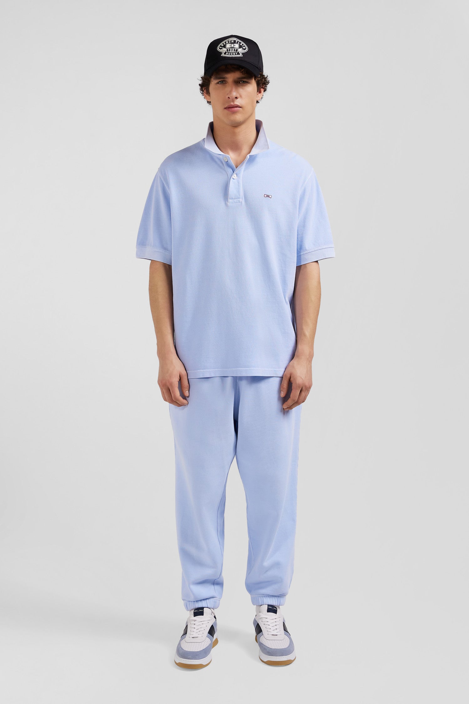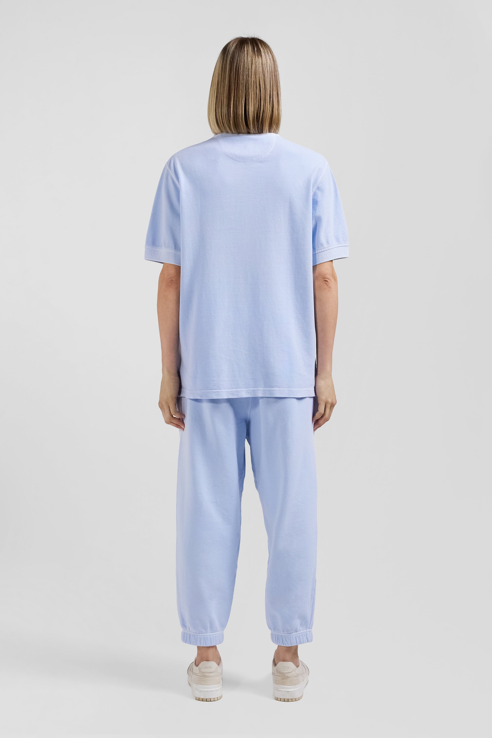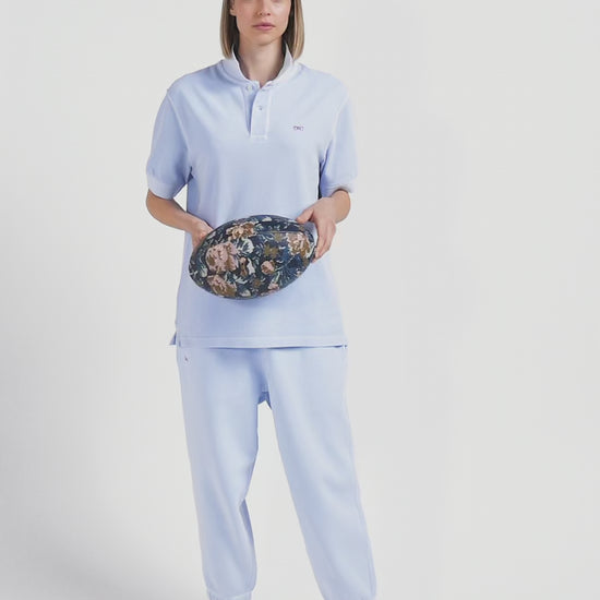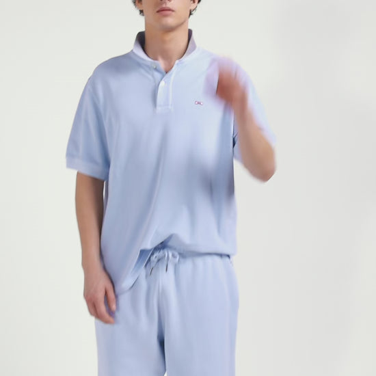 Oversized sky blue unisex short-sleeved cotton piqué polo shirt