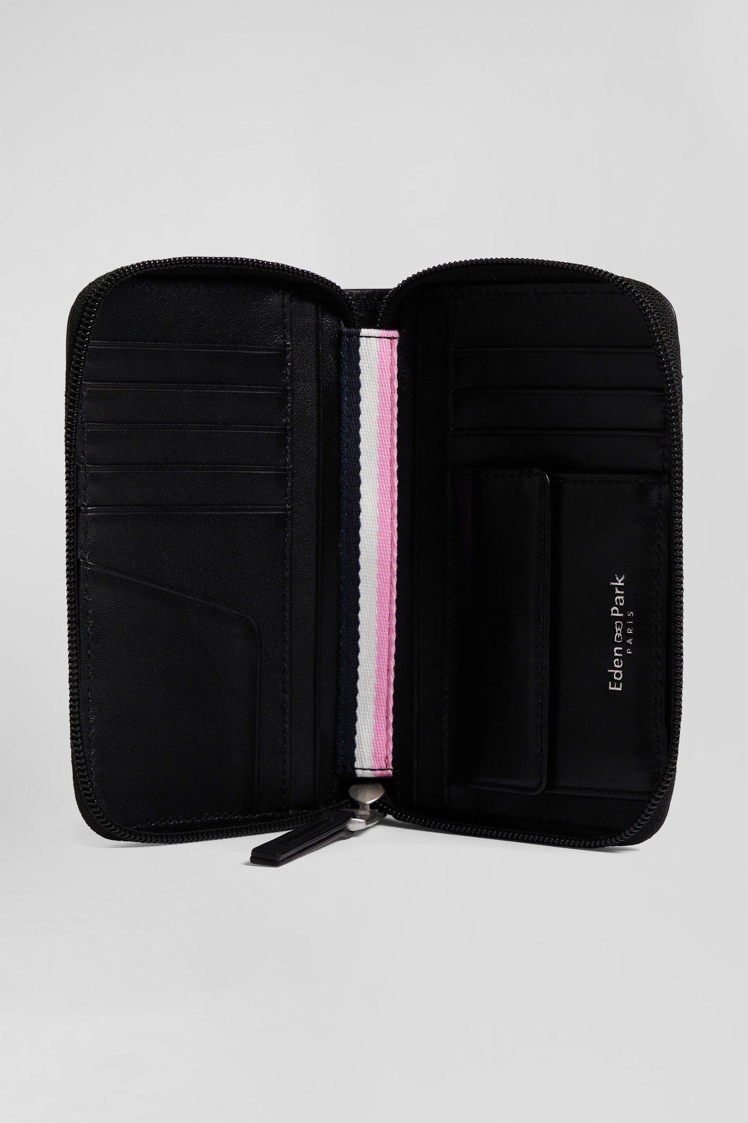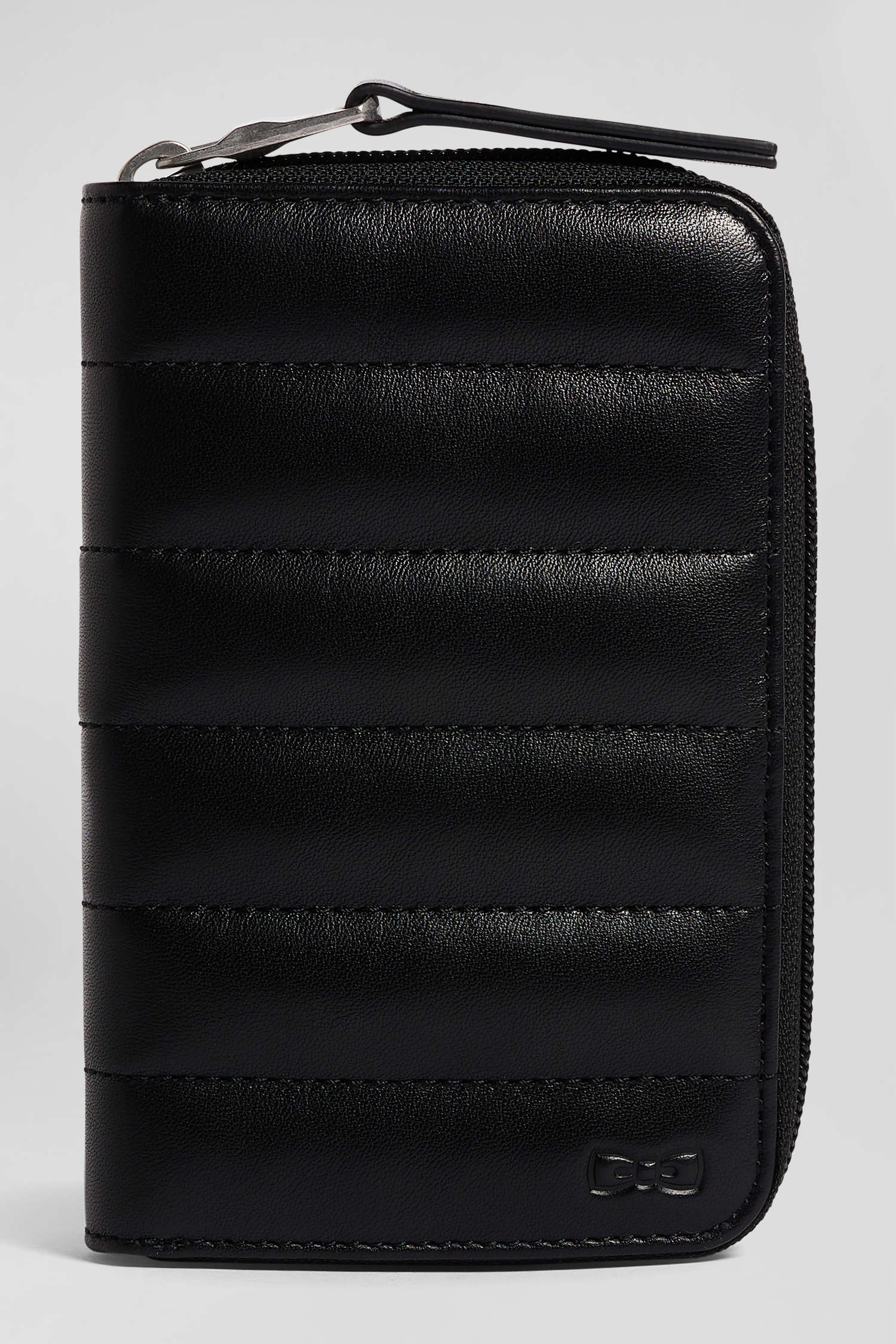 This French-style wallet in black cowhide combines elegance and ingenuity. Its compact construction reveals meticulous work on volume, giving it a timeless yet innovative character. With its sporty-chic volume effect and tonal bowtie emblem, this versatile accessory will quickly become a staple of your daily routine. Whether for everyday use or as a gift, its practicality and distinctive style are sure to win you over.