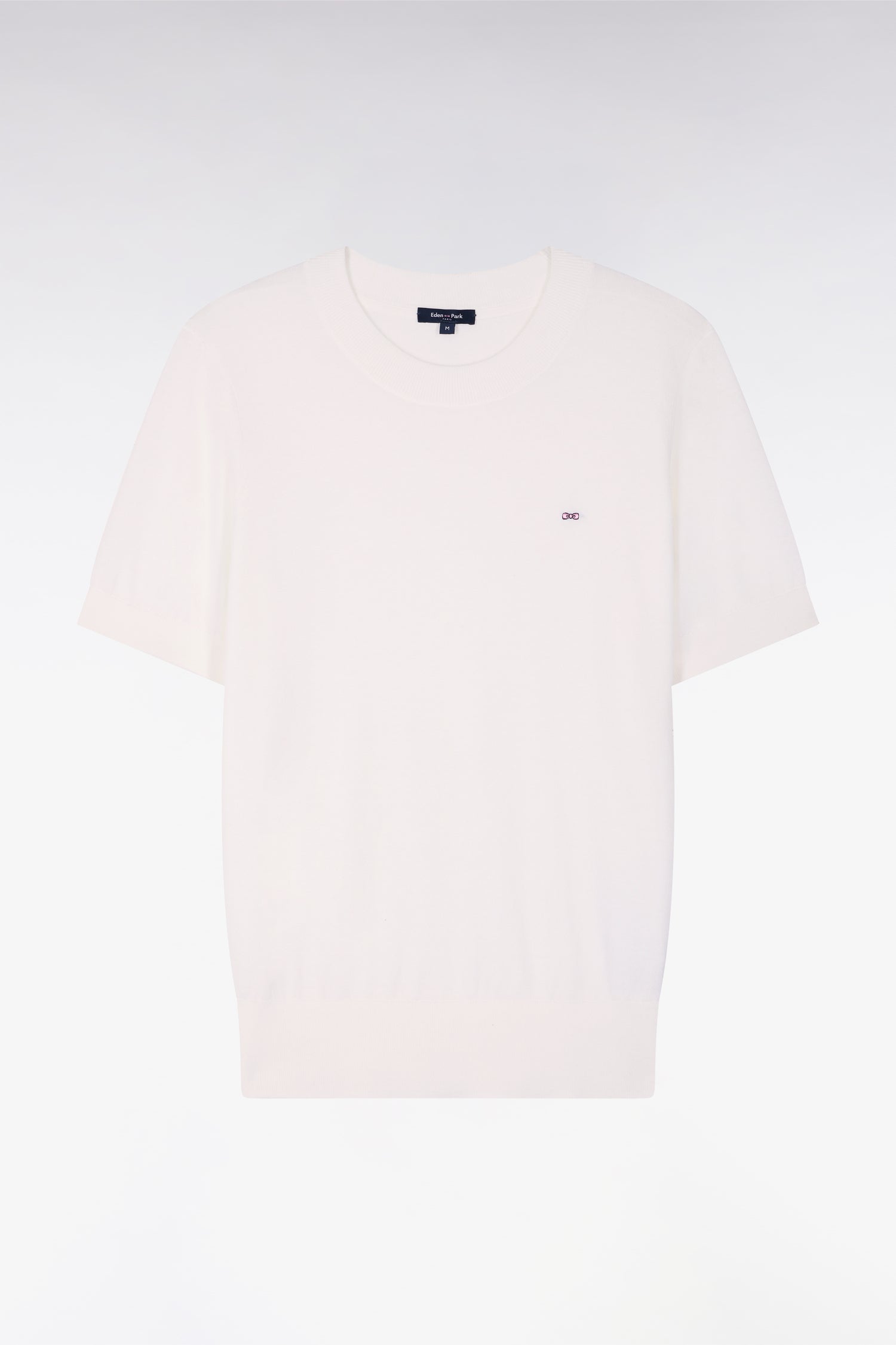 Ce pull à manches courtes, proposé en noir ou en blanc intemporels, promet une allure minimaliste et soignée idéale pour la mi-saison. Sa coupe regular en fait une pièce facile à superposer : il se glisse naturellement sous son cardigan col V à liseré, complétant un look féminin, graphique et raffiné. Un essentiel moderne à porter du bureau au week-end.