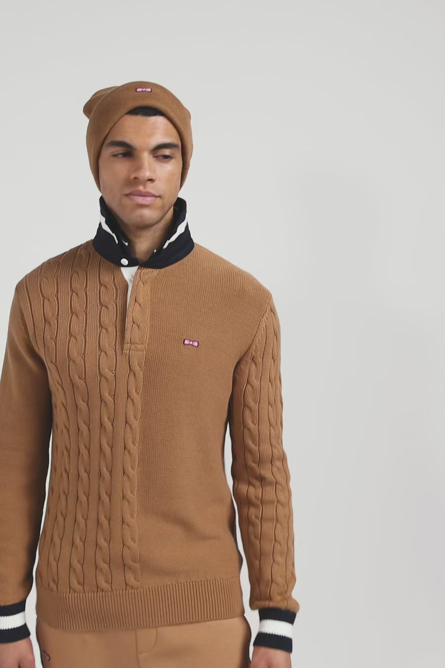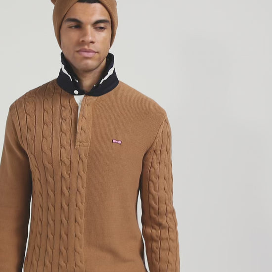 Regular camel cotton jumper with rugby shirt collar