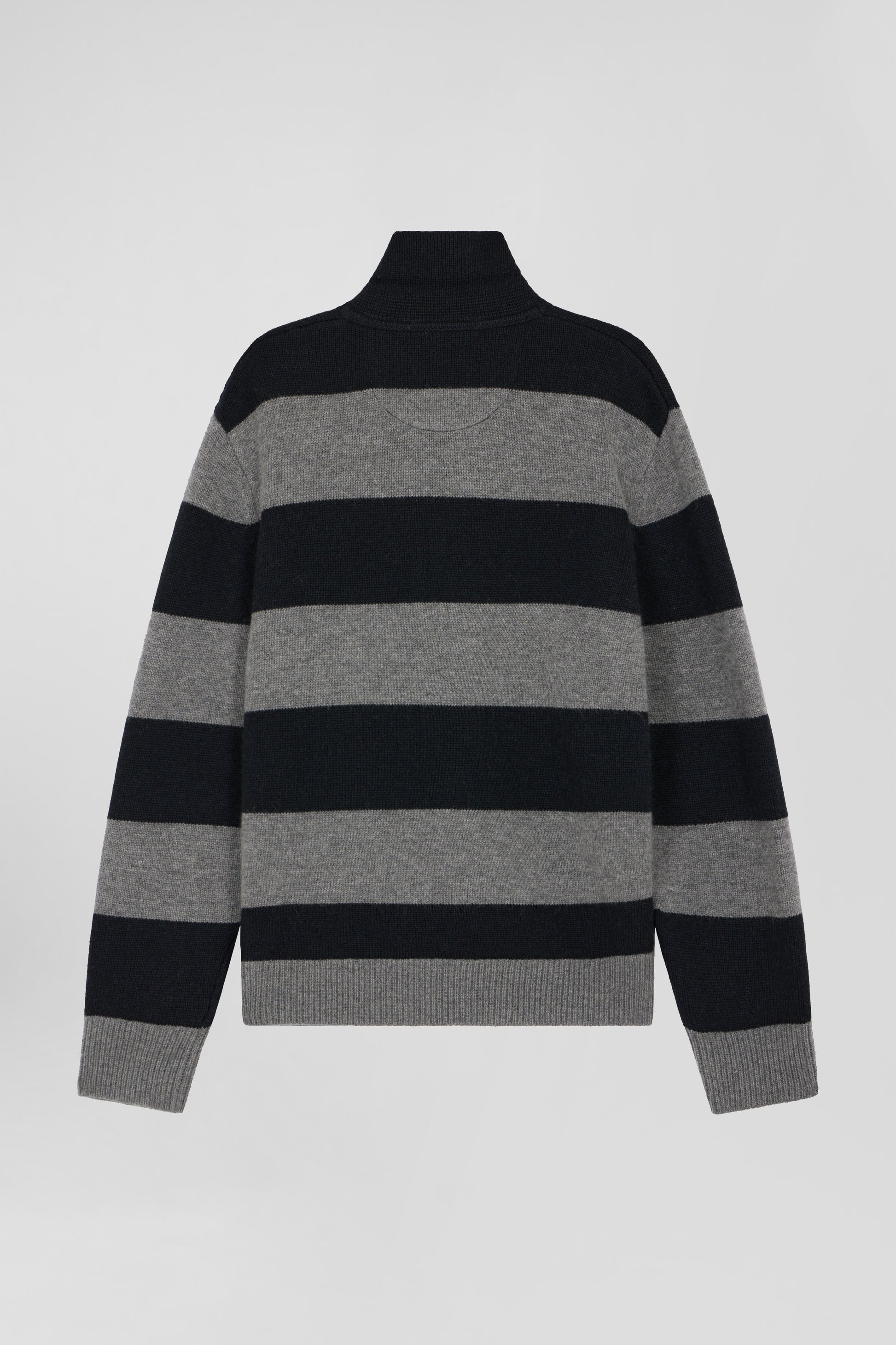 Add a modern touch to your winter wardrobe with this women's striped sweater, the perfect embodiment of Eden Park style. Crafted in wool and cashmere, it features elegant black and gray stripes, enhanced by a contrasting collar. Its relaxed fit and refined design make it ideal for a chic, cosy look, whether at the office or at the weekend.
