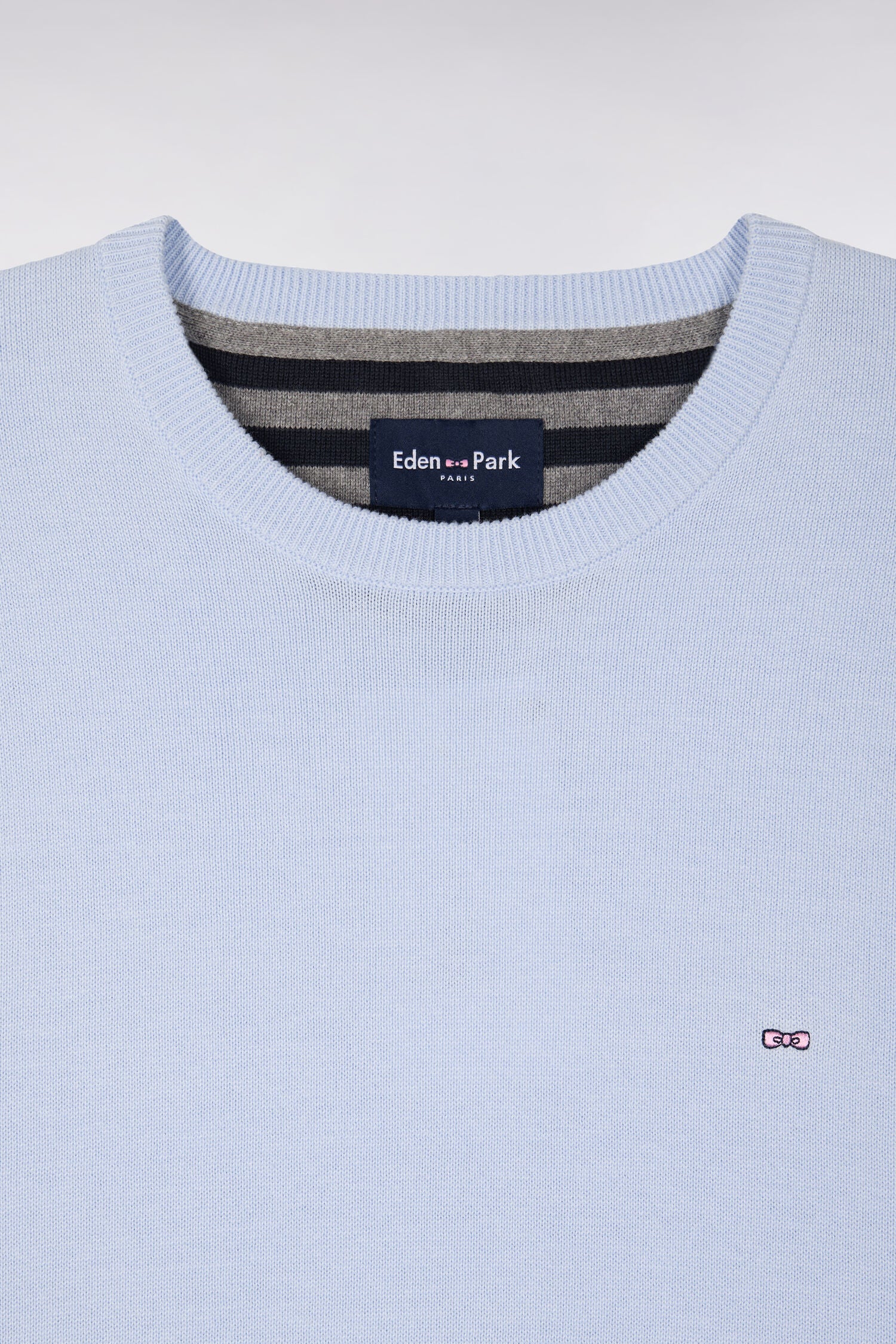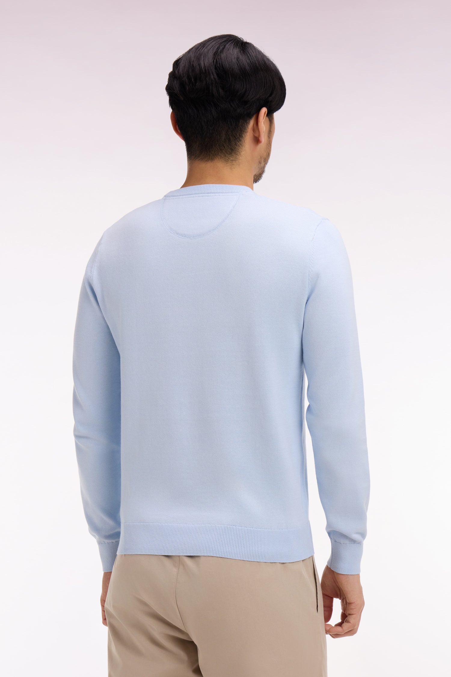 Ce pull col rond tricoté en coton pur séduit par son alliance d'élégance et de confort. Léger et respirant, ce modèle est parfait pour l'entrée de saison, s’associant aussi bien à un chino qu’à un jean dans son coloris ciel ou vert doux. Détail discret emblématique du vestiaire de la Maison, sa Demi-lune intérieure s'habille de rayures rugby.