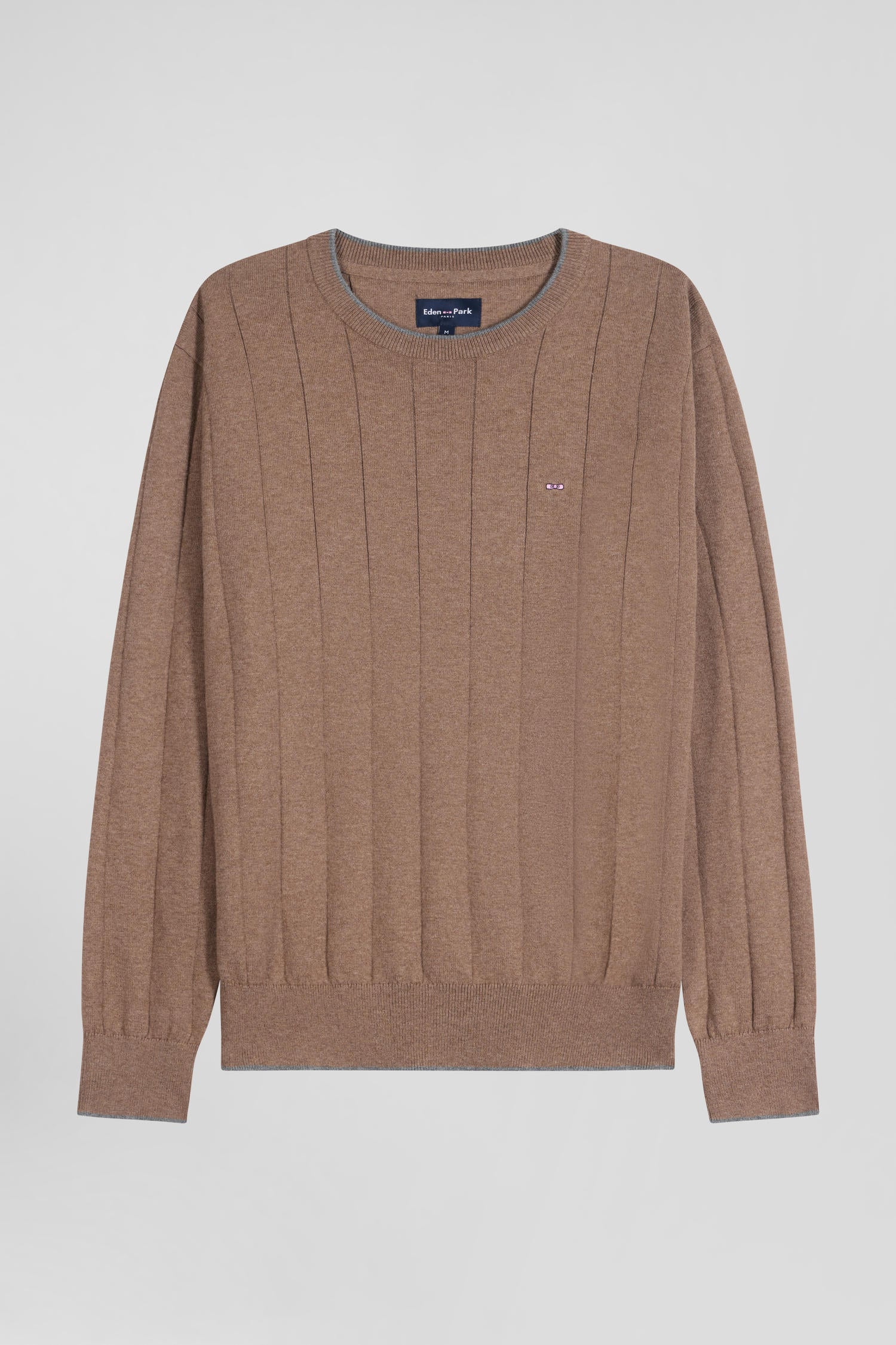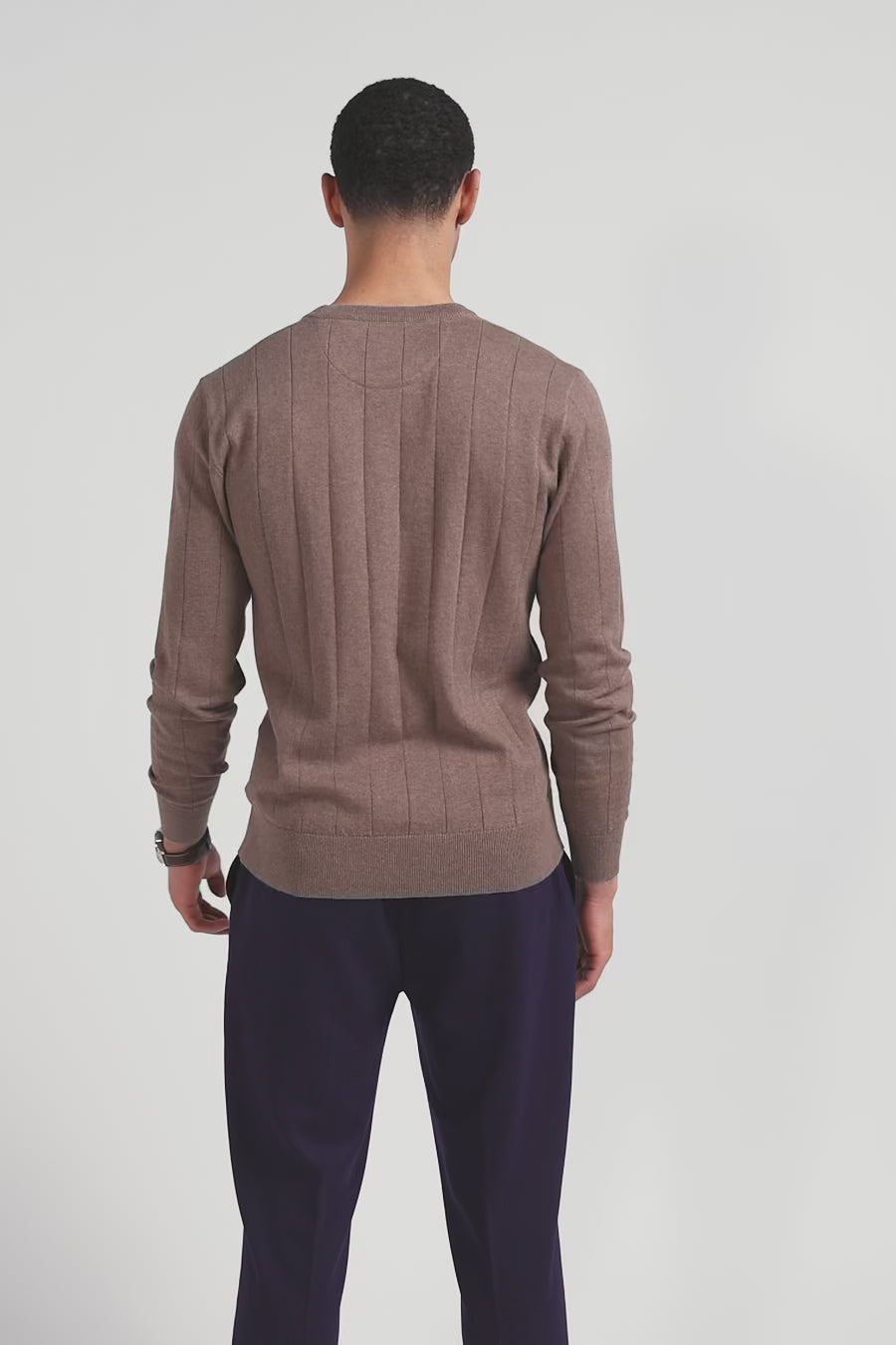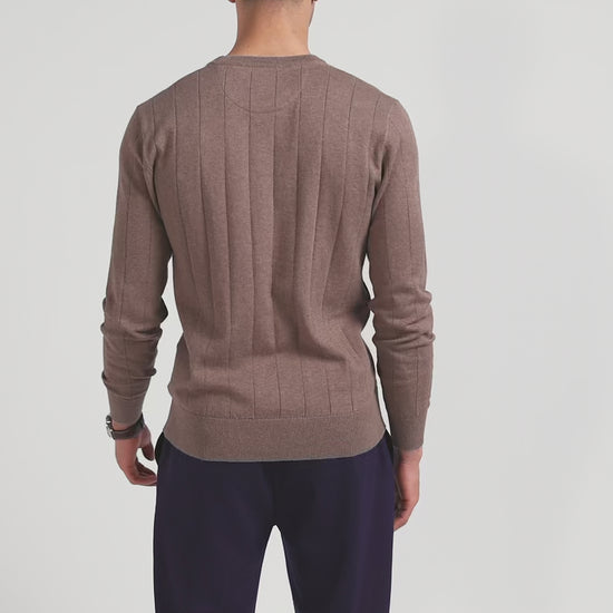 This men's round-neck sweater features a tonal stripe effect crafted through careful knitting and construction. Crafted in cotton and cashmere for softness and warmth, this timeless sweater is adorned with our essential bow tie embroidery.