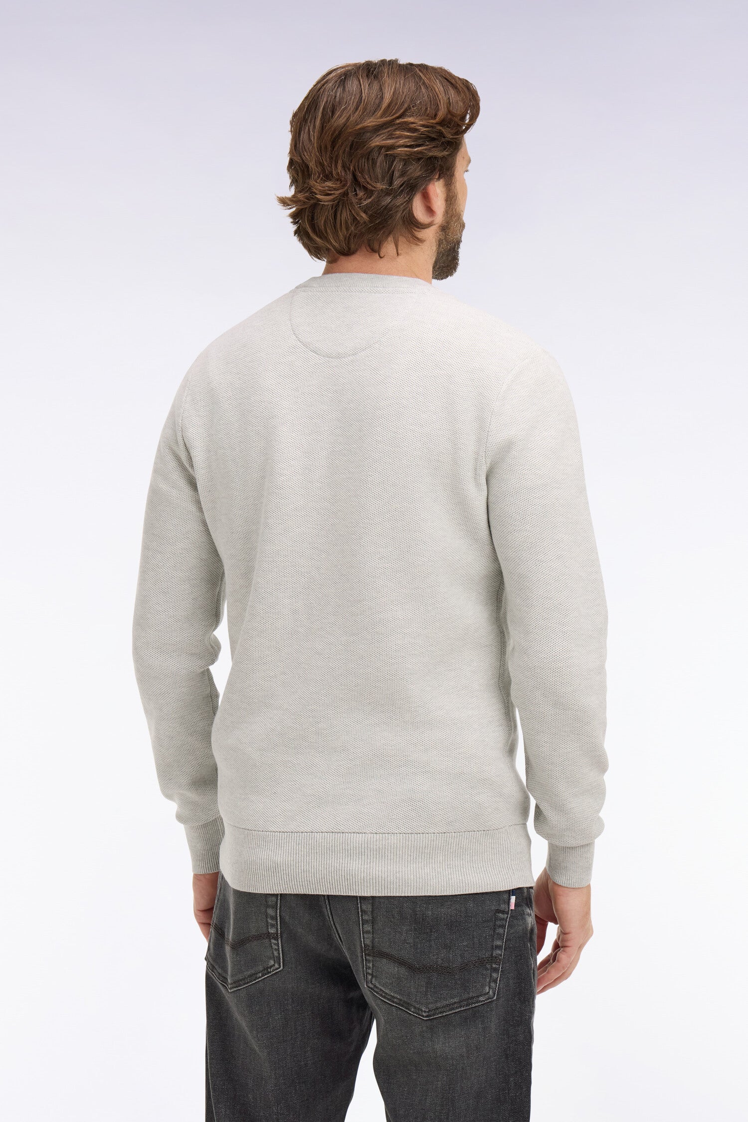 Pull col rond en coton gris clair