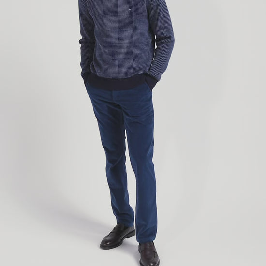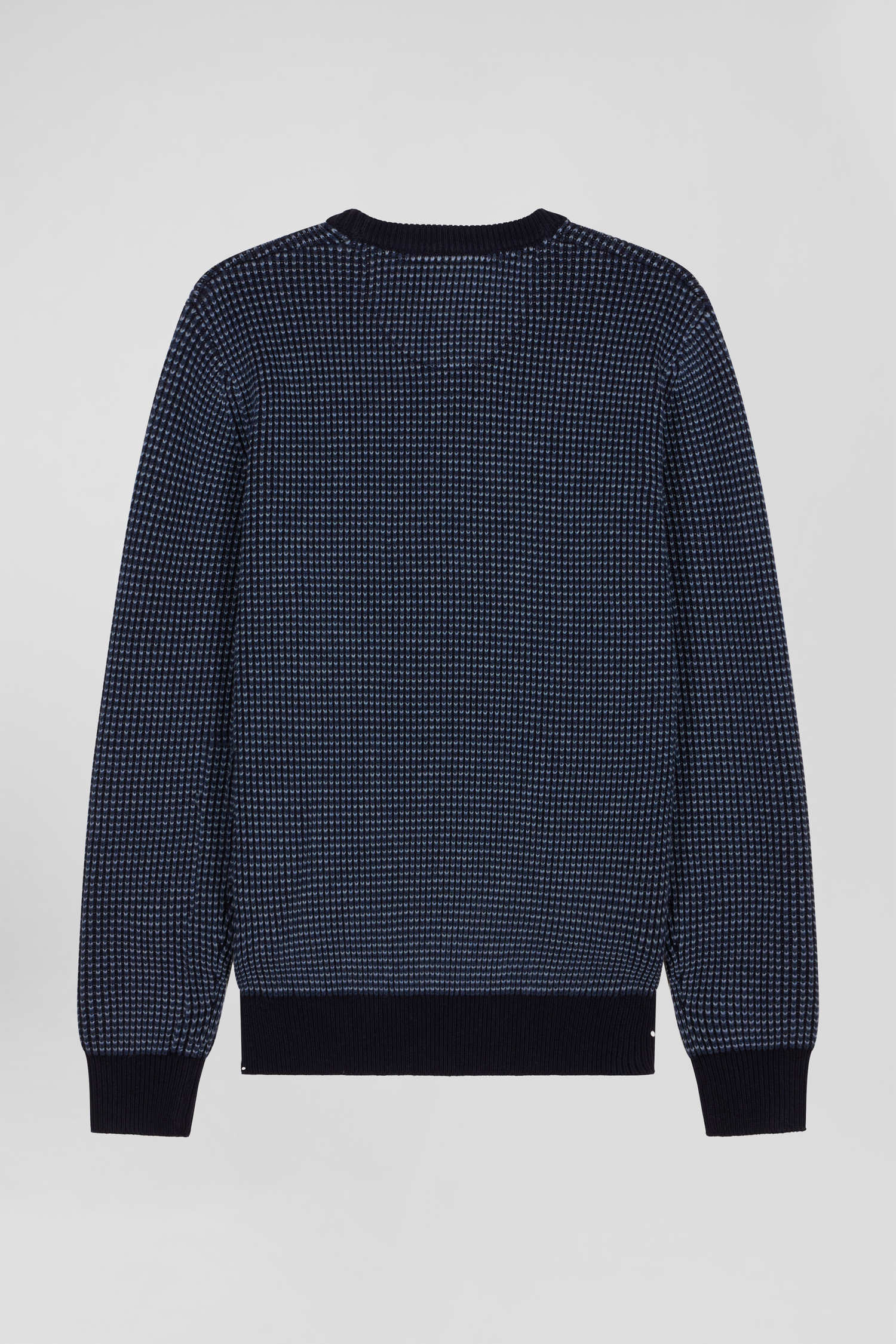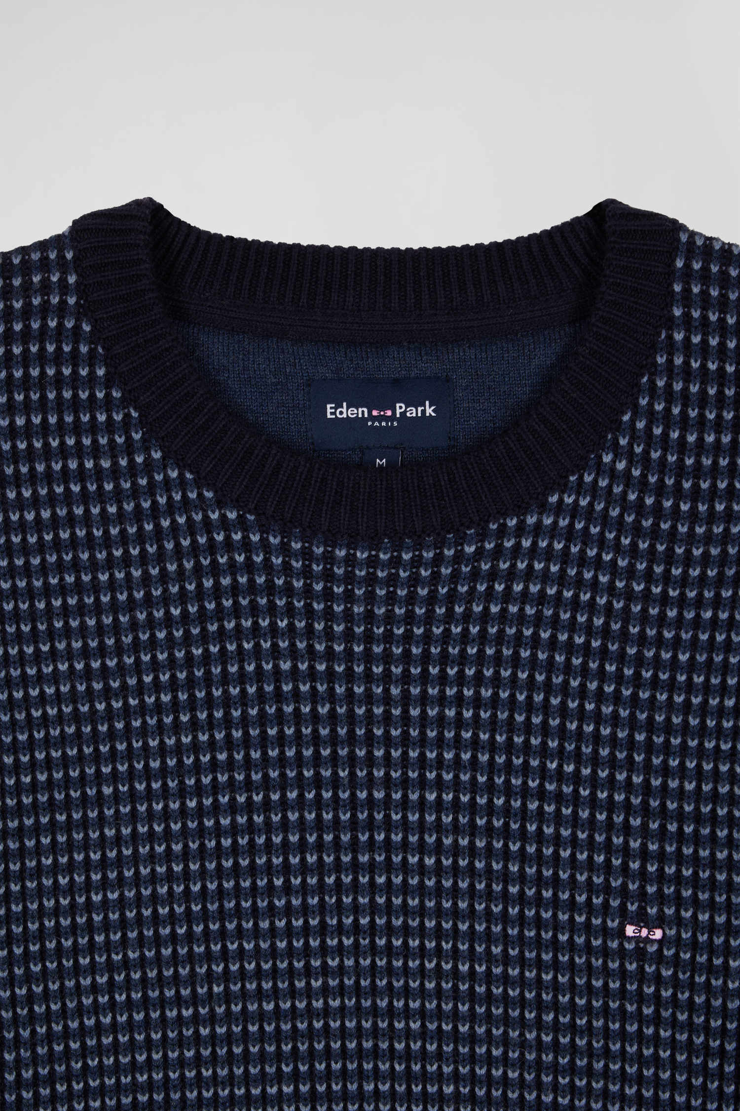 This men's round-neck sweater features contrasting knitwear with a tricolor effect. Its English rib knit gives this winter sweater a touch of originality. Perfect for adding a unique visual dimension to your outfit, this wool and cotton sweater in our timeless colors combines comfort and style with elegance.