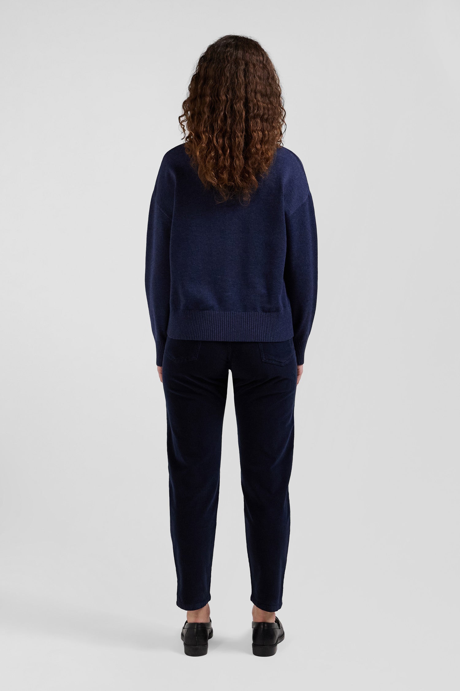 Our elegant round-neck sweater is designed to combine style and comfort. Crafted from a rich blend of wool and cotton, this sweater benefits from the natural properties of these fibers, offering warmth, softness and breathability. The Relaxed cut adds a touch of casual chic, while the discreet bowtie logo embroidery adds a subtle signature to this women's sweater. Available in a range of colors, this timeless piece is a perfect choice for those who value quality and durability in their wardrobe.
