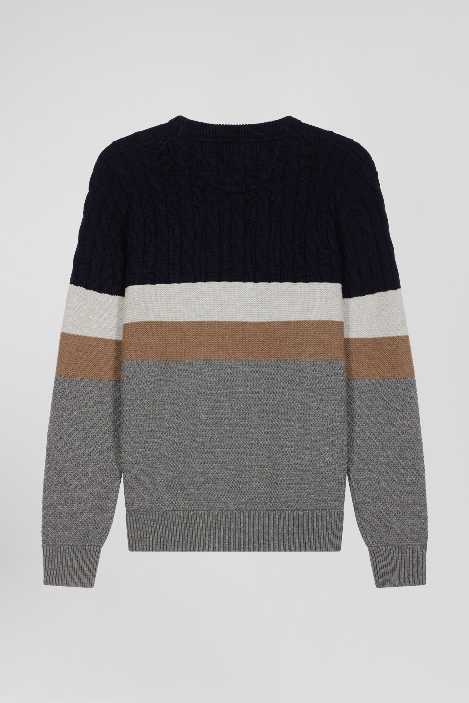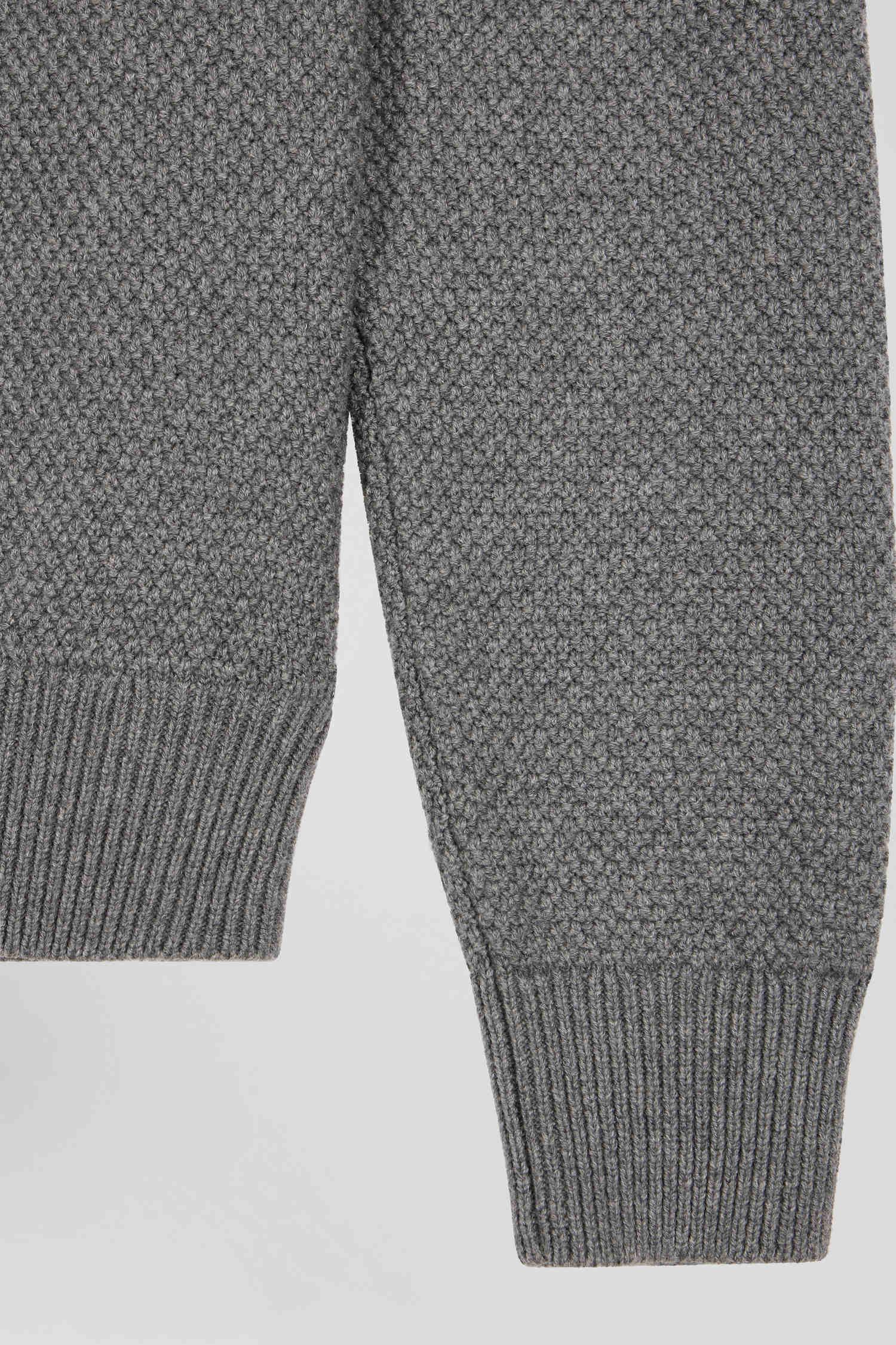 Regular grey wool and cotton crew neck jumper with knit patterns