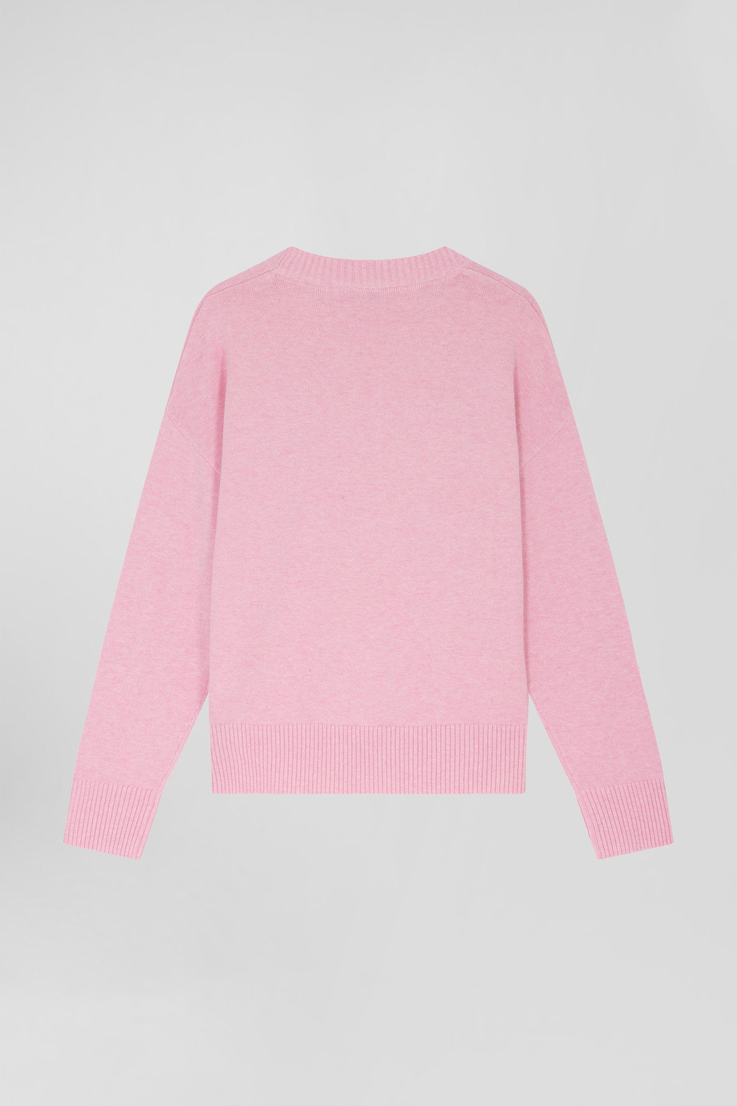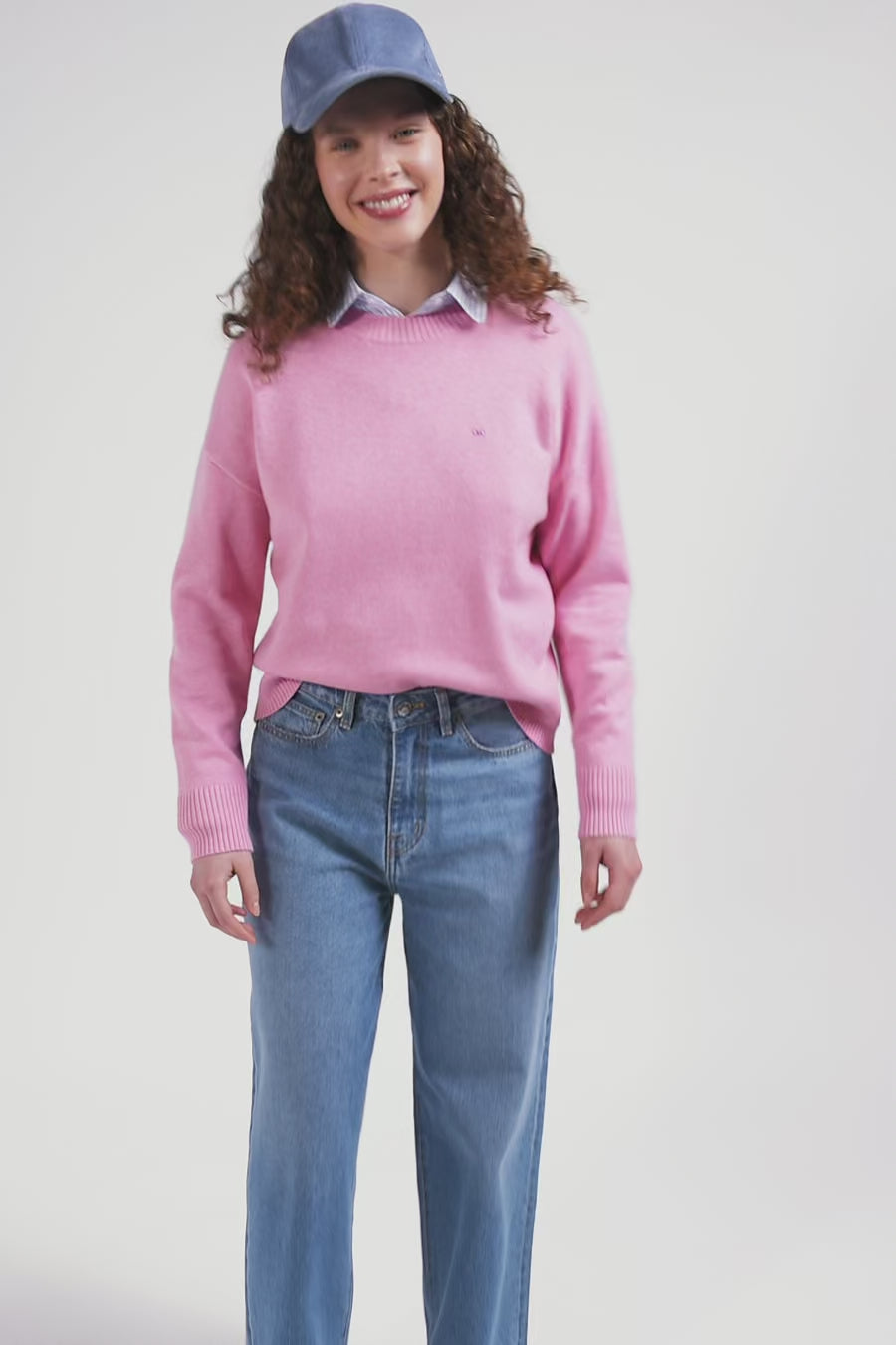 Our elegant round-neck sweater is designed to combine style and comfort. Crafted from a rich blend of wool and cotton, this sweater benefits from the natural properties of these fibers, offering warmth, softness and breathability. The Relaxed cut adds a touch of casual chic, while the discreet bowtie logo embroidery adds a subtle signature to this women's sweater. Available in a range of colors, this timeless piece is a perfect choice for those who value quality and durability in their wardrobe.